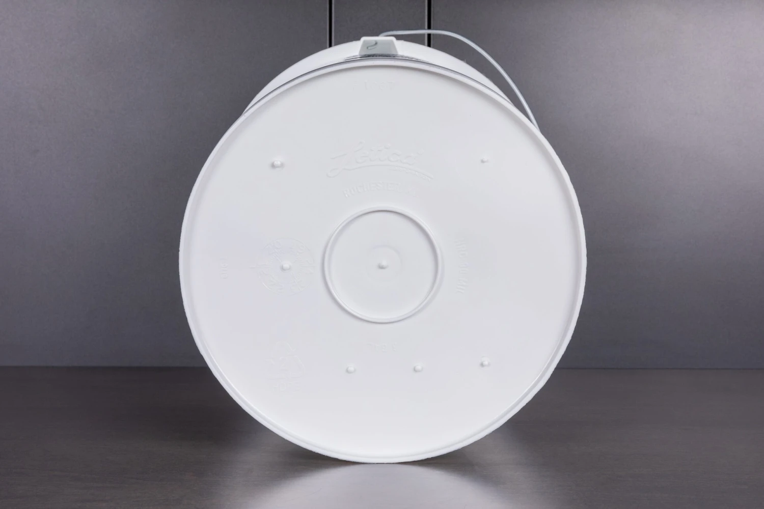 This is a 90 mil true white bucket. They’re much nicer than you’ll find at Home Depot or somewhere similar. I think white is the most natural color to go with in this application