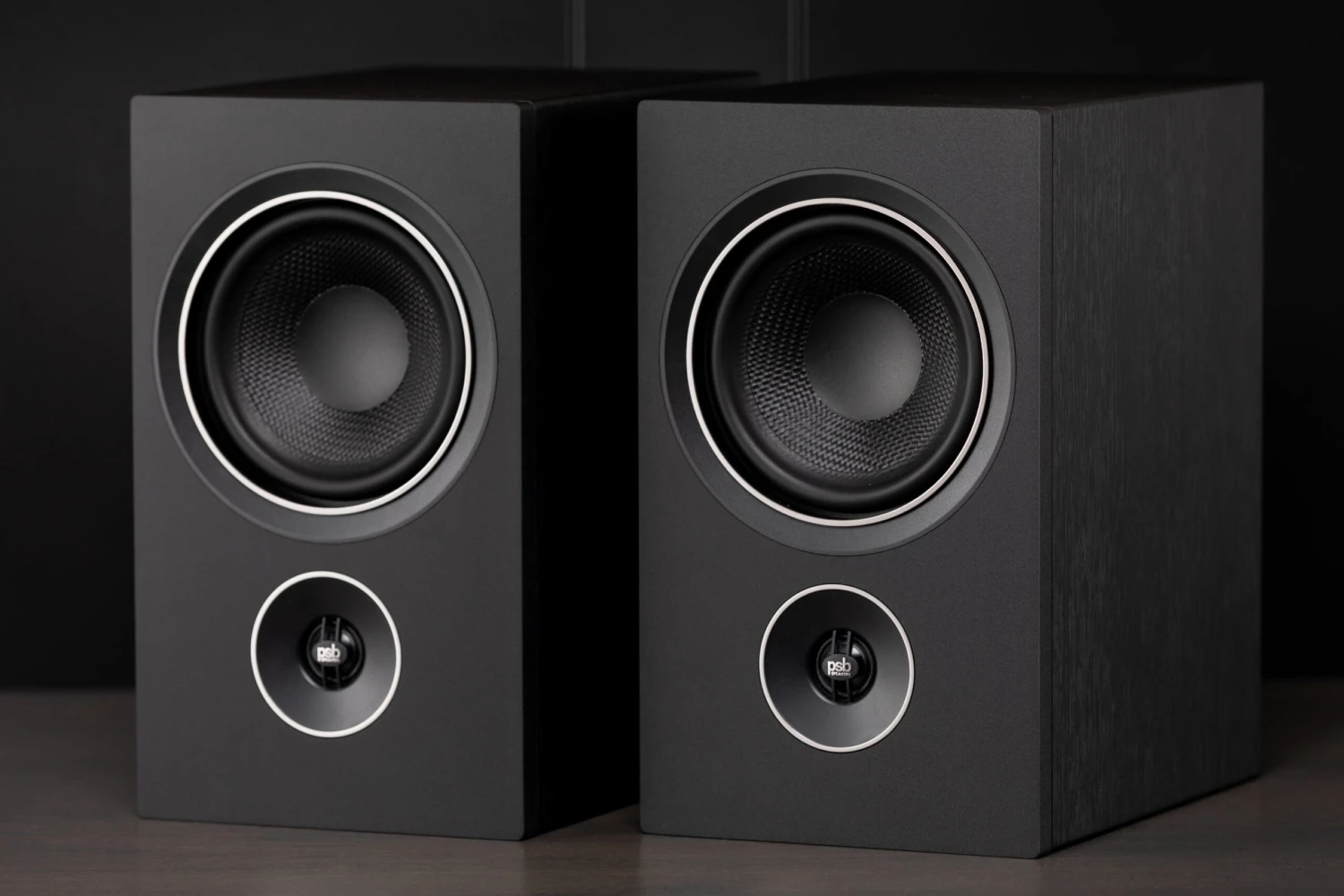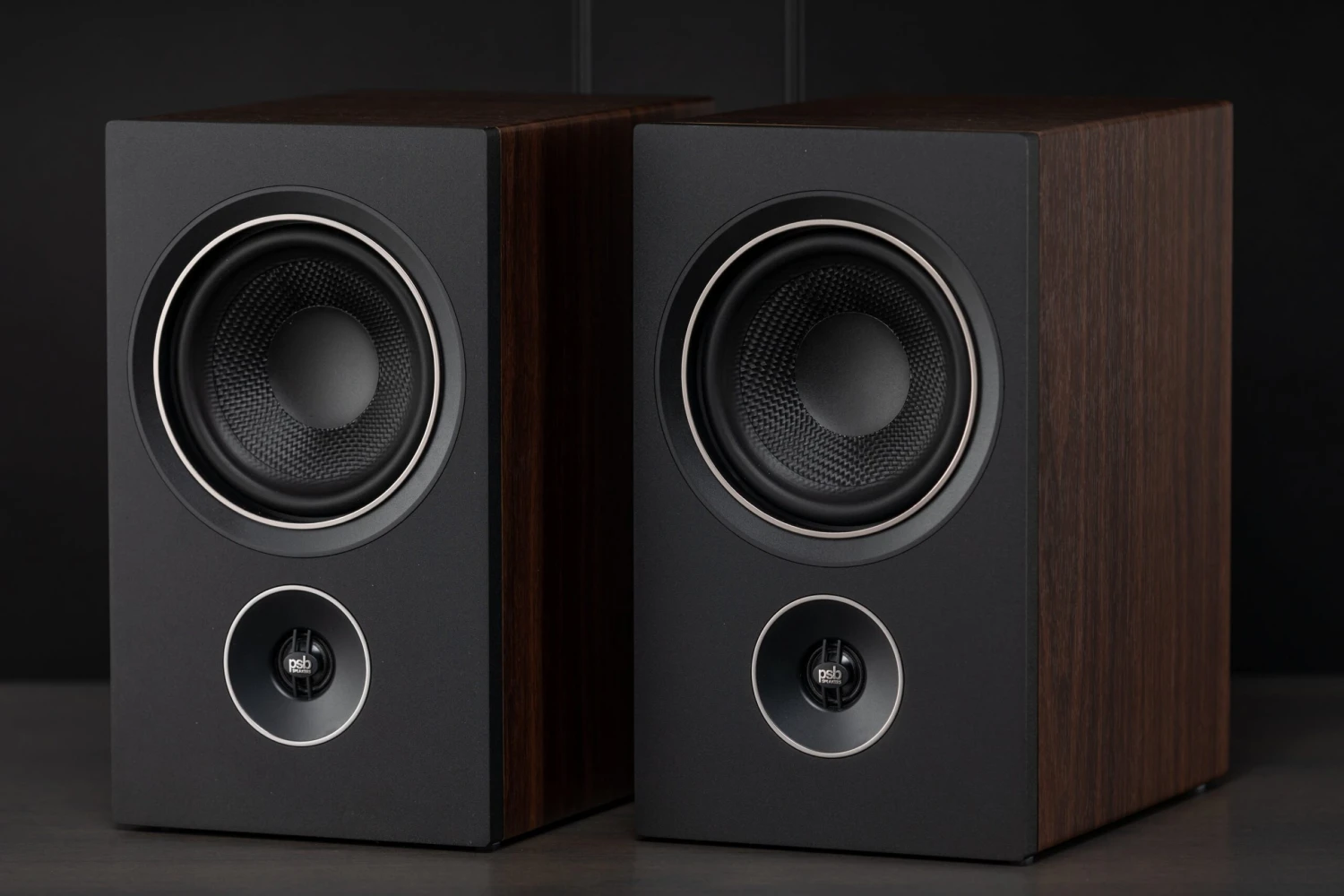 . My pick would be the P5’s. These are the non-powered version PSB’s (no built-in amplifier) with an aluminum tweeter that gives them a brighter sound. You’ll have the choice of two different colors, black or walnut.
