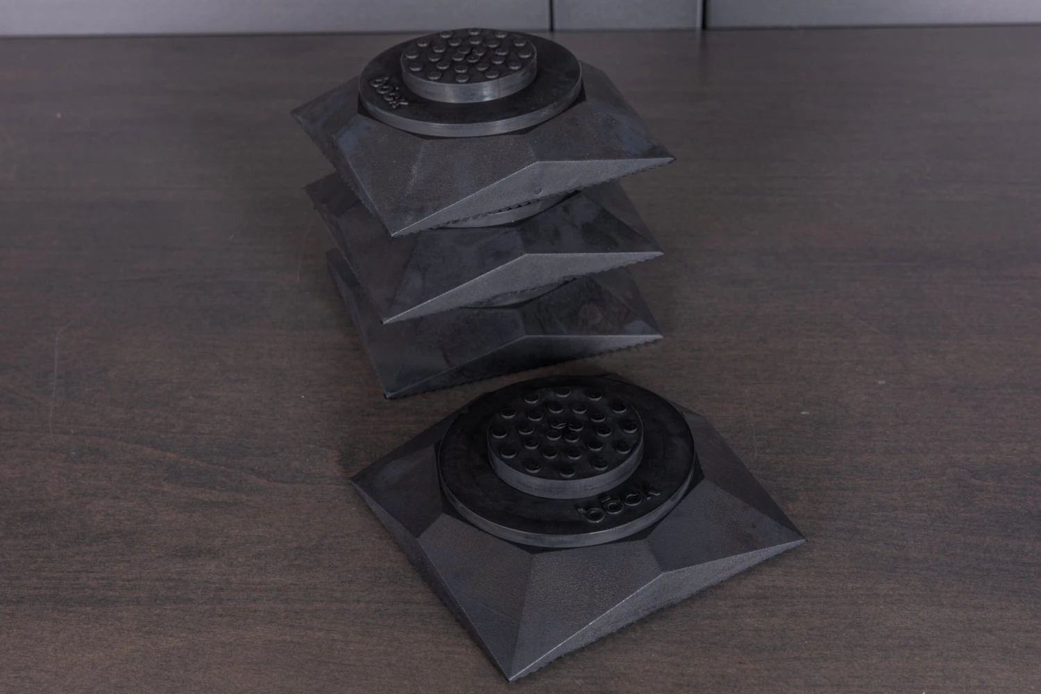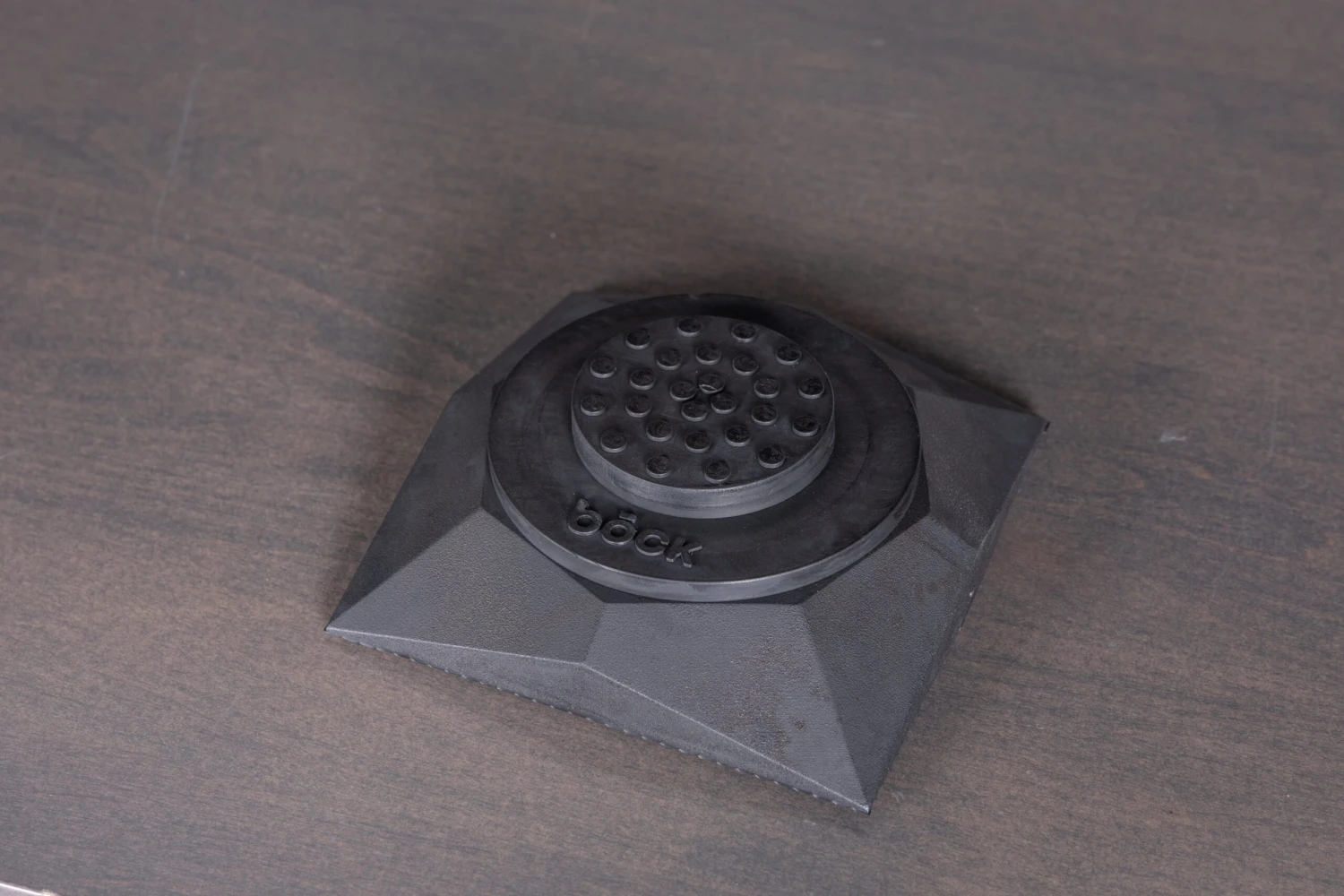 These rubber blocks for electric vehicles were an ingenious idea from my friends at BOCK Automotive Lifting Solutions. Because of the large battery packs on EVs, the lifting points are smaller, so the block that touches the car needs to be smaller as well.