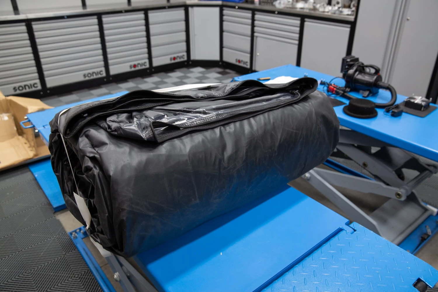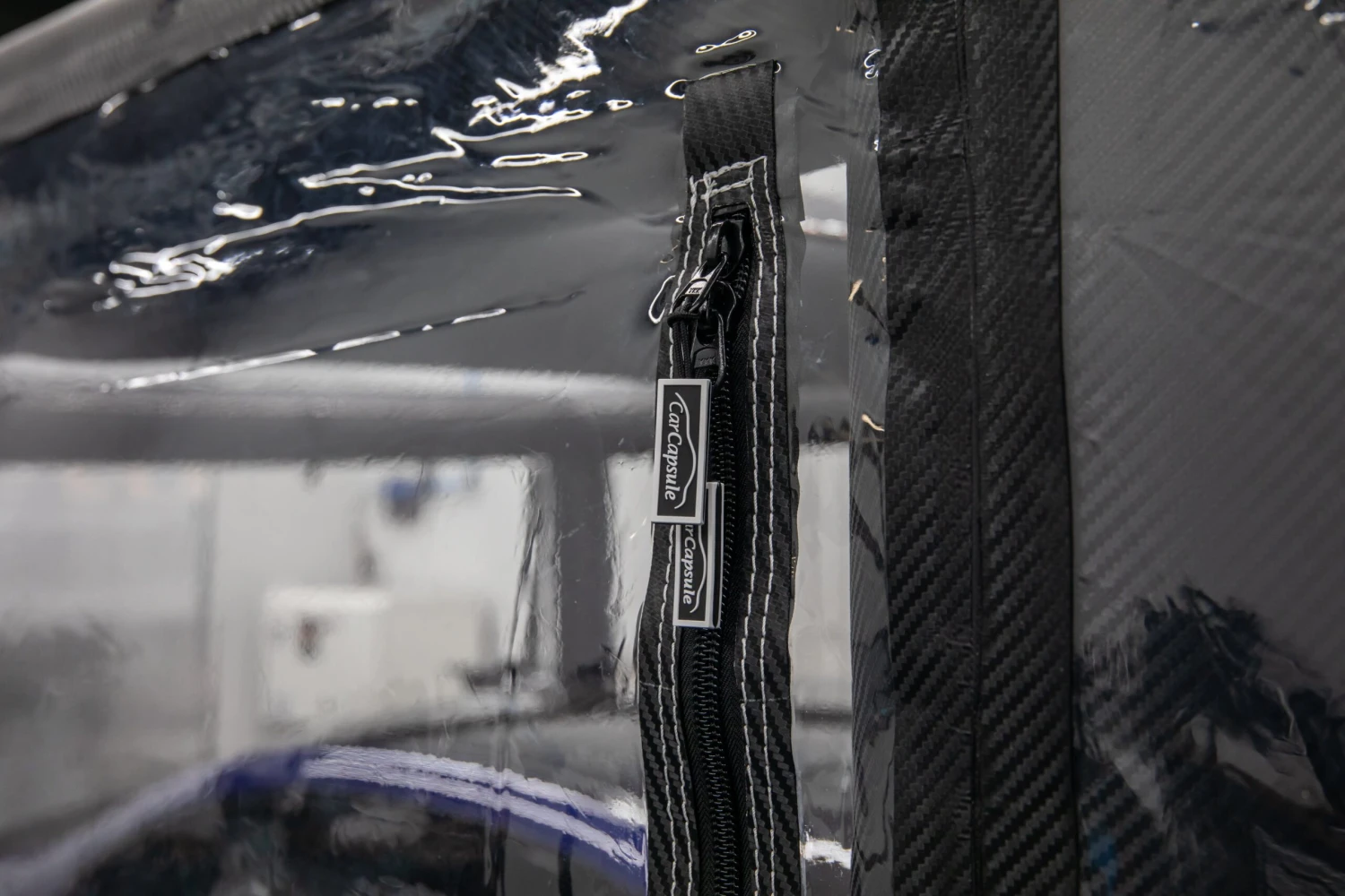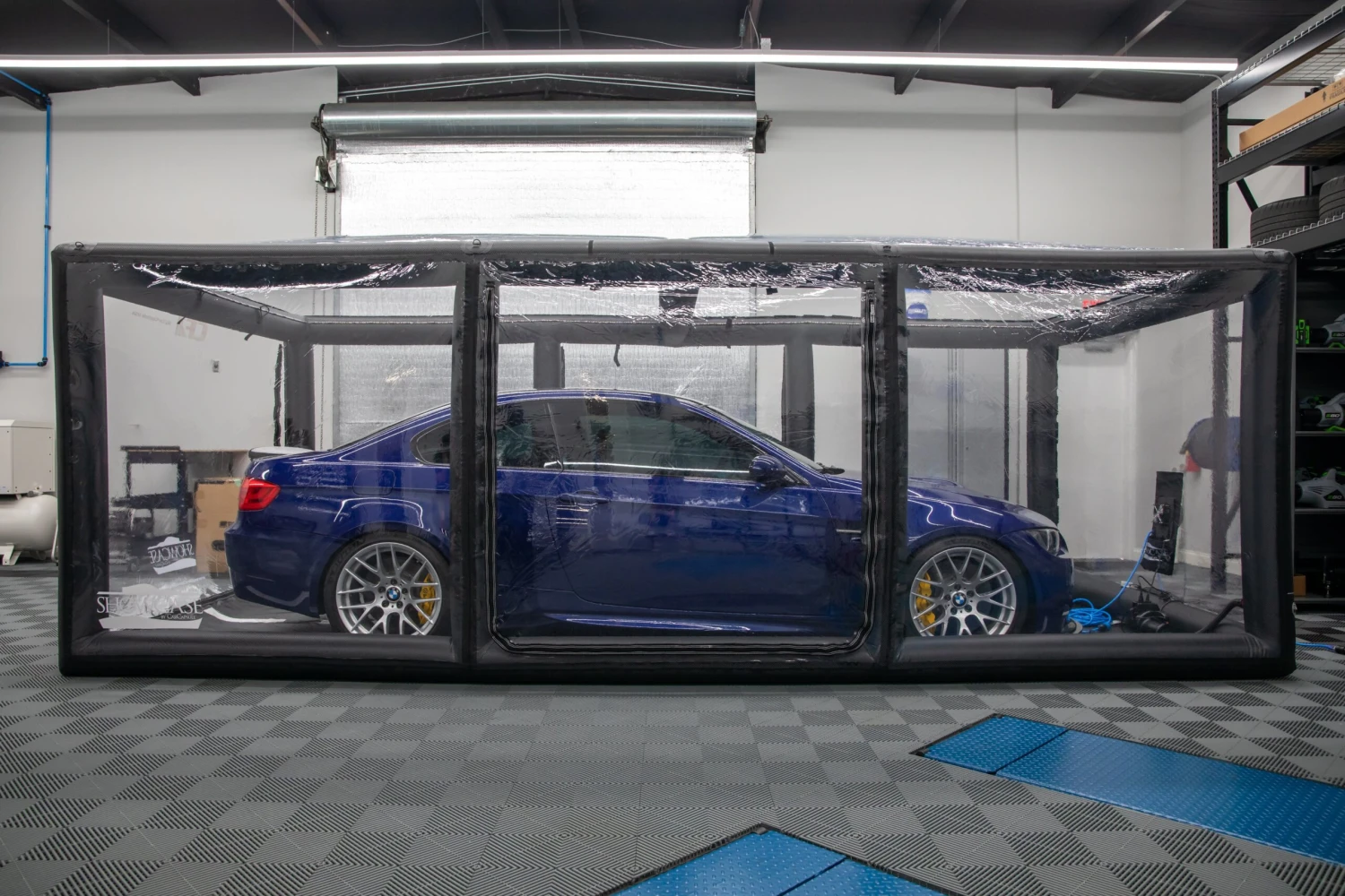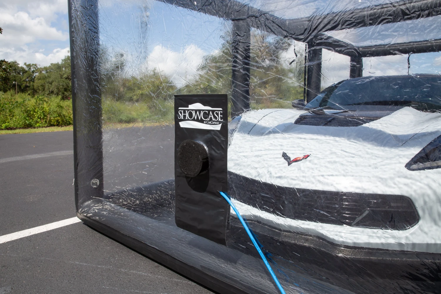 I ordered one of these after having a mouse destroy the wiring harness in my Blue GT3. I put it on the side of my wash bay to store and keep my GT3 RS clean when I’m not driving it. This model of the CarCapsule Showcase Indoor version comes in two different versions (The Signature Series & Non-Signature Series). The Signature Series adds a checkerboard flooring, LED lighting & the IntelliCharge dual use battery tender and recirculating fan power supply. Signature Series will come with white pillars instead of black pillars.