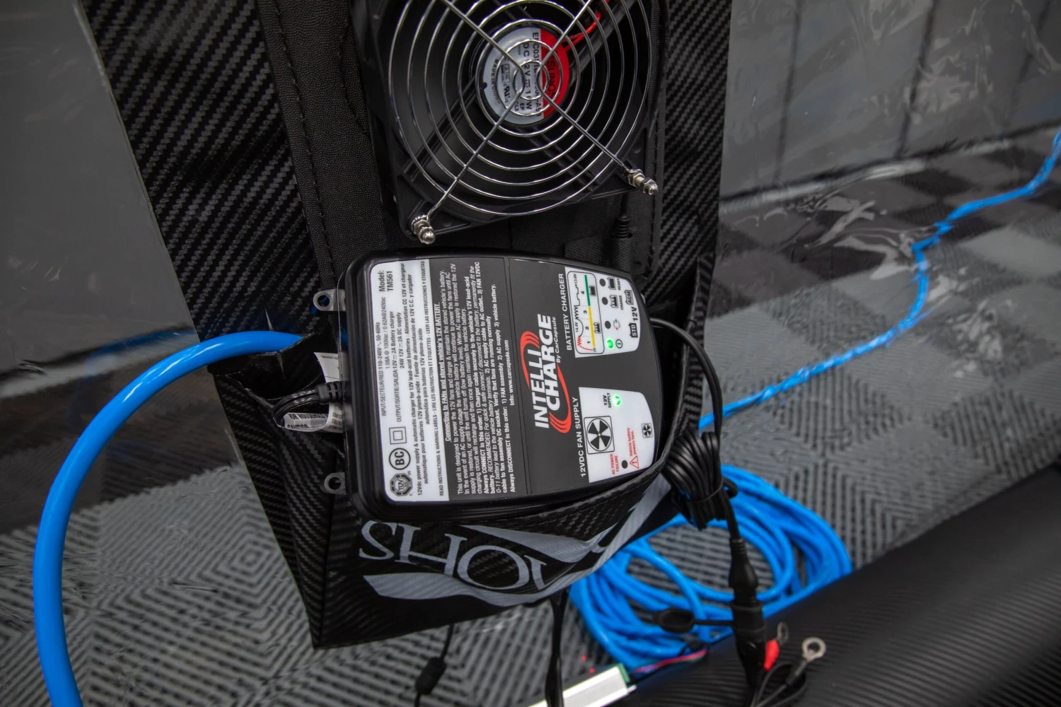 - IntelliCharge dual-use battery tender and recirculating fan power supply.
