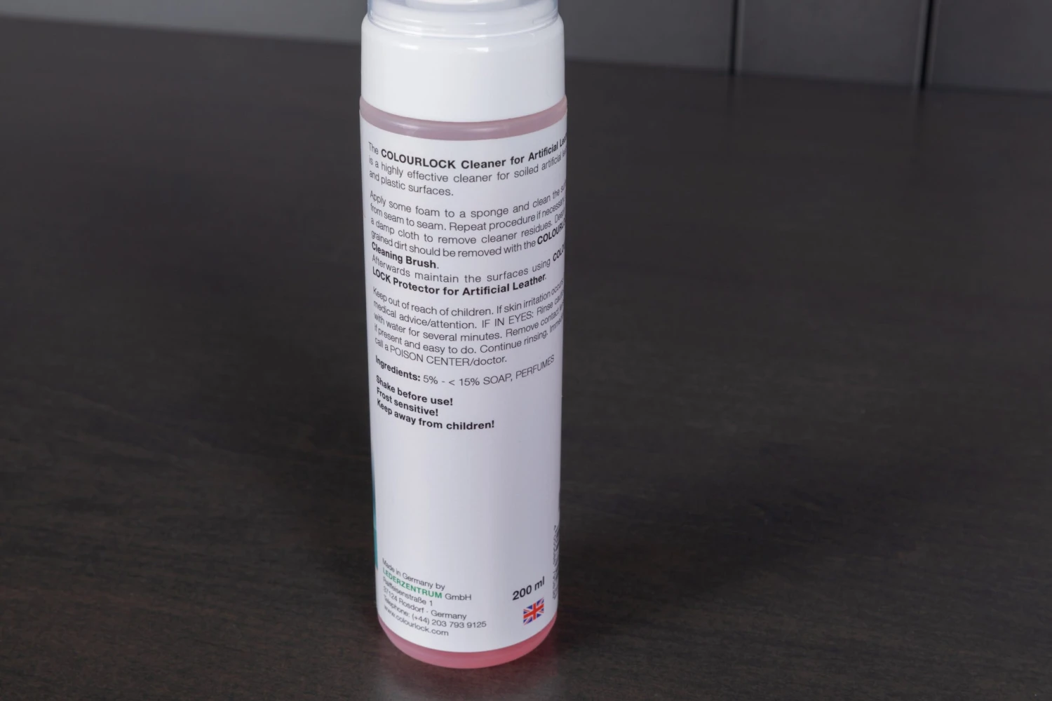We personally had Lars and Ram from Colourlock come out to Obsessed Garage and show me their techniques for cleaning leather and Alcantara so we can learn more about the process of caring for car interiors. During their visit, we talked about the different Colourlock leather cleaners and going over the correct methods and what cleaners to use for your specific type of leather. The Colourlock Artificial Leather Cleaner is meant for artificial or plastic leather surfaces and is provided in a foam dispenser bottle. Foams clean the leather more efficiently than liquid agents. You would use this 200ml of Artificial Leather Cleaner is usually sufficient for the cleaning of a whole car interior.