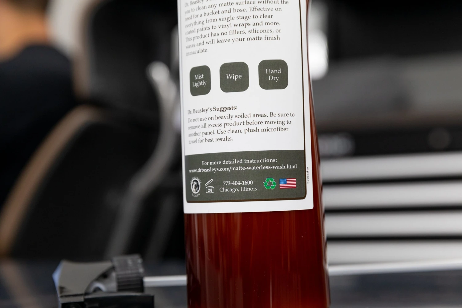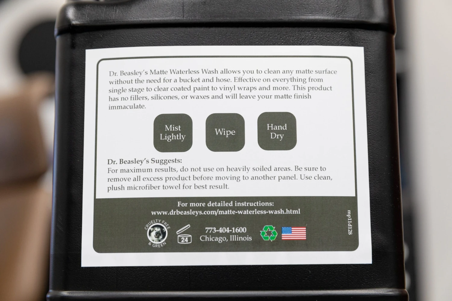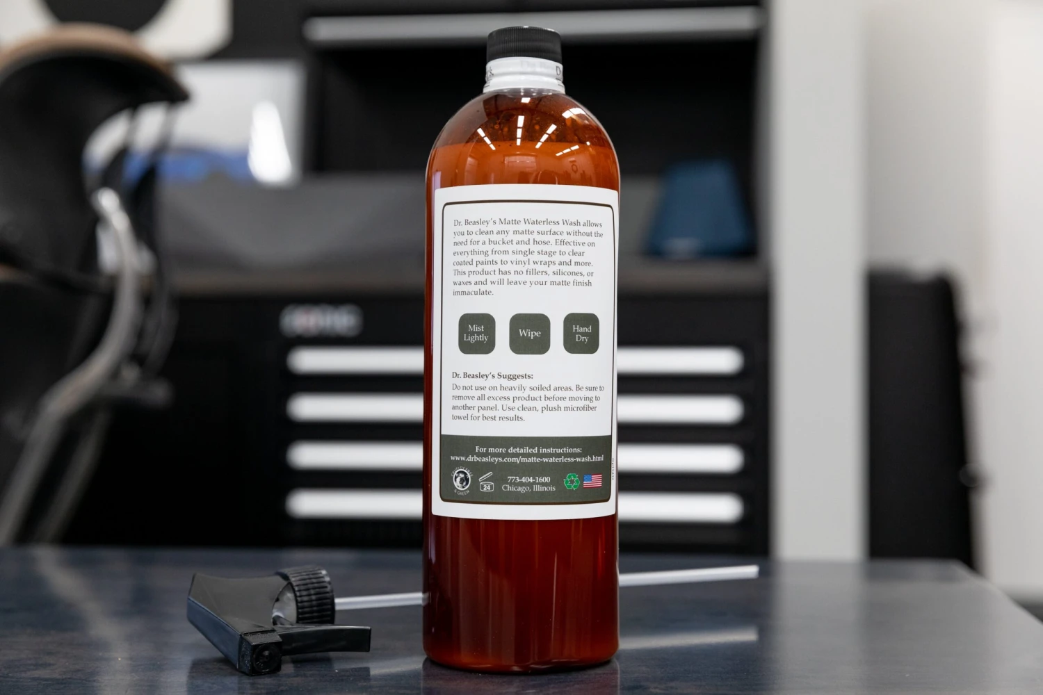 We’re now carrying a full solution for matte paints and films in the store, we’re working with Dr. Beasley’s to offer a full solution for owners of frozen / matte paint. From experience, we know matte paint can be a pain because you can not polish it without ruining the finish and if it’s coated you’re not going to be able to remove it until it has failed. We did a whole series of using Dr. Beasley’s products on a black frozen M5, I suggest you check out the series to get an idea for what products should be used on your matte paint. Matte Waterless Wash is meant to be used as a washing solution that removes loose contaminants from matte & satin finishes without the use of water. If you don’t have access to a water source this is your next best choice for washing your car with light dirt and contaminants. If your car is heavily soiled we suggest you do a proper wash with some buckets and shampoo.