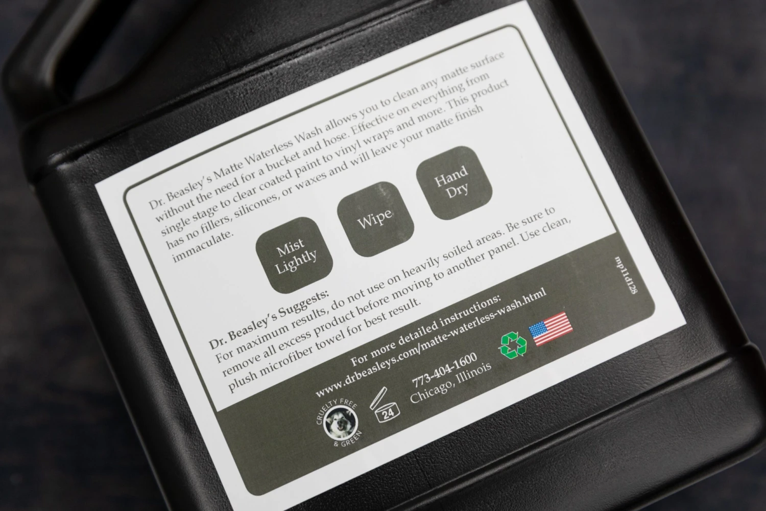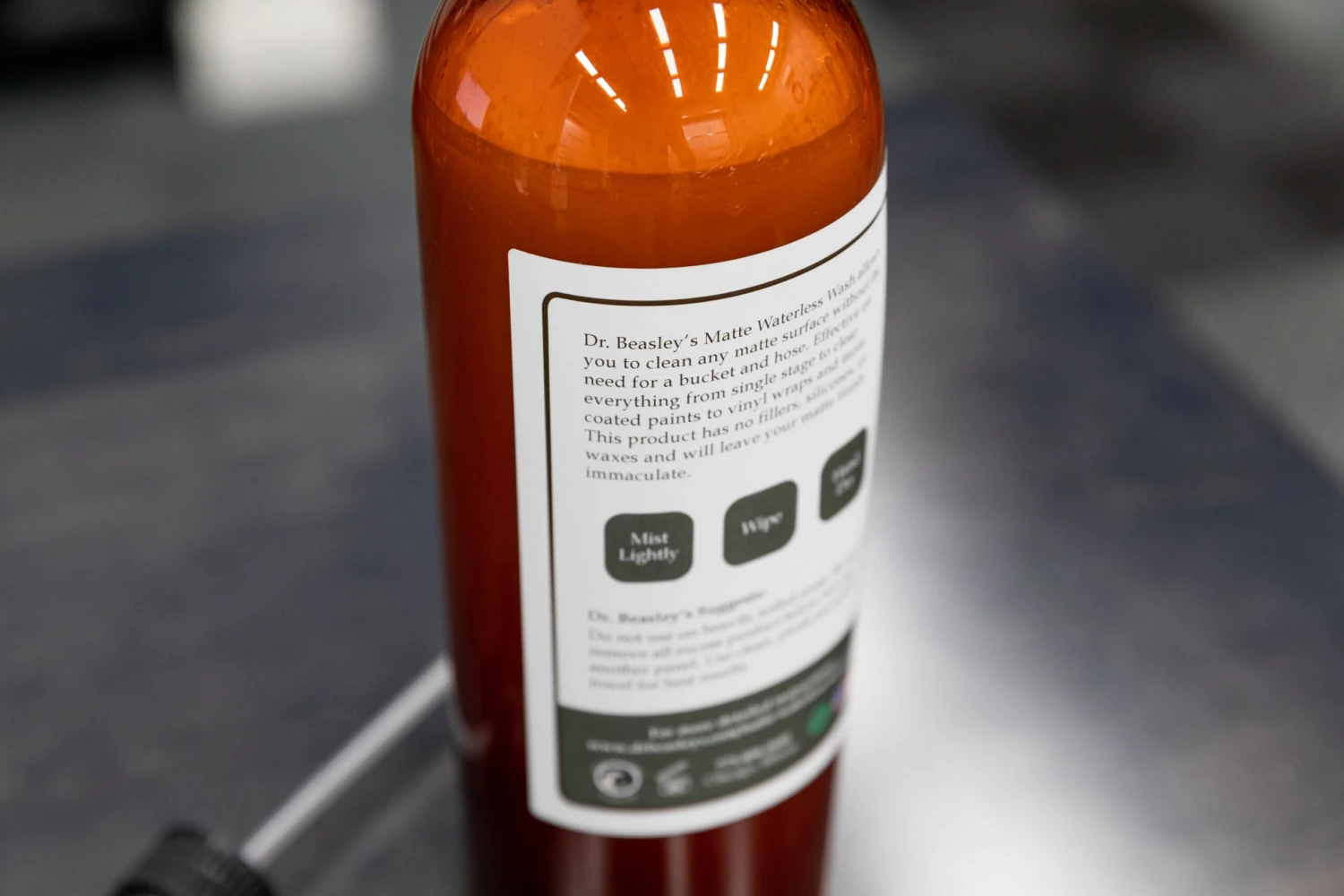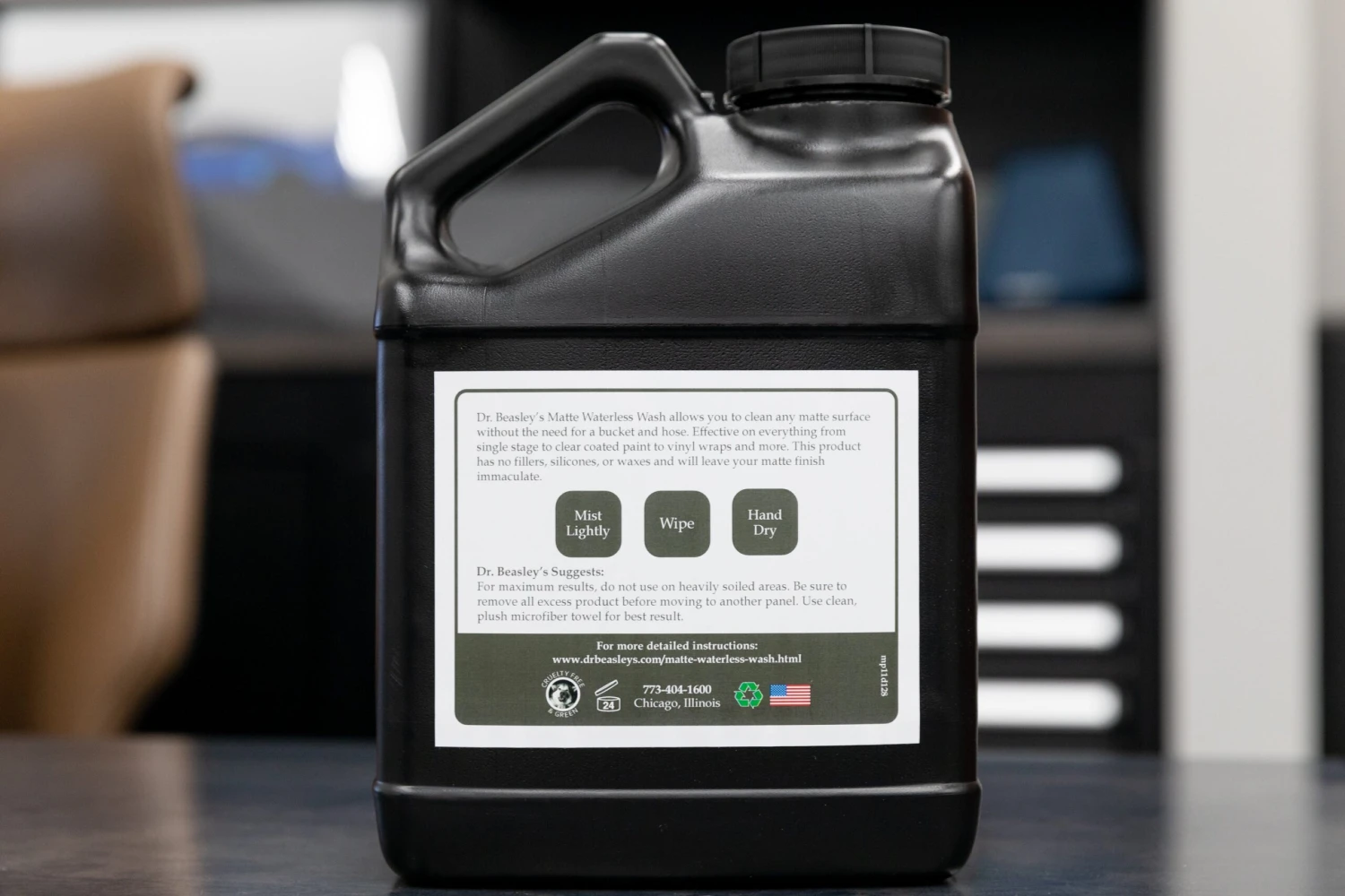 We’re now carrying a full solution for matte paints and films in the store, we’re working with Dr. Beasley’s to offer a full solution for owners of frozen / matte paint. From experience, we know matte paint can be a pain because you can not polish it without ruining the finish and if it’s coated you’re not going to be able to remove it until it has failed. We did a whole series of using Dr. Beasley’s products on a black frozen M5, I suggest you check out the series to get an idea for what products should be used on your matte paint. Matte Waterless Wash is meant to be used as a washing solution that removes loose contaminants from matte & satin finishes without the use of water. If you don’t have access to a water source this is your next best choice for washing your car with light dirt and contaminants. If your car is heavily soiled we suggest you do a proper wash with some buckets and shampoo.