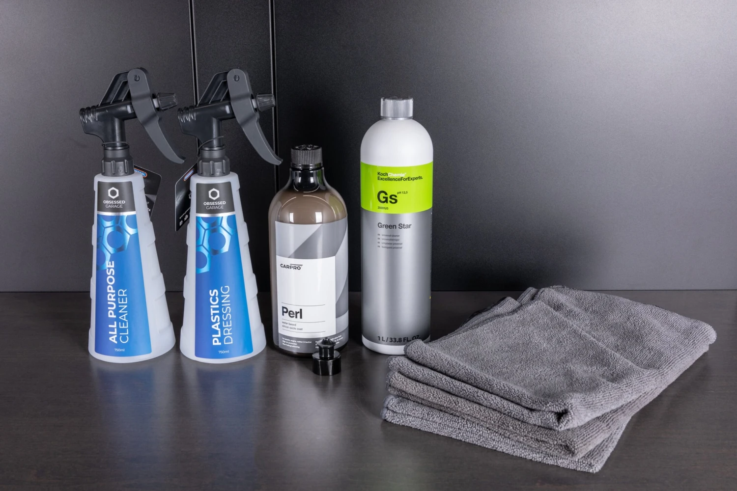 A car isn’t dialed in unless the engine bay is clean—my words. I had my guys put together this engine bay package that contains all the tools you’ll need to address what I think is the most neglected part of the car detailing process.