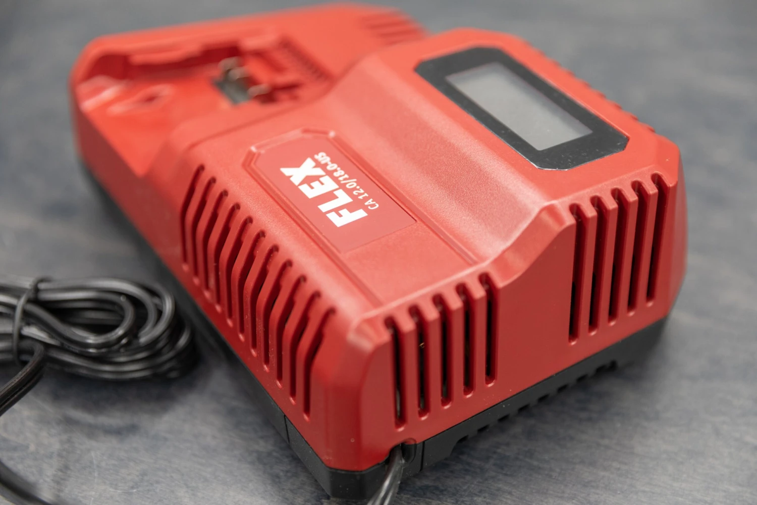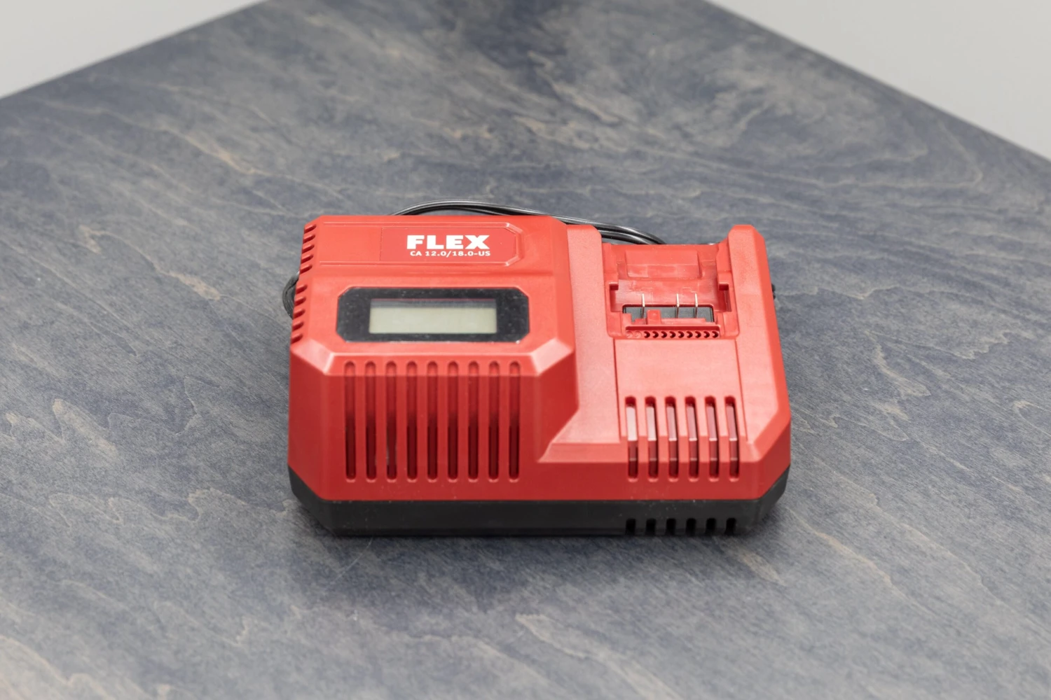 The Flex charger is useable with both 12V and 18V batteries we sell for Flex polishers, it’s what they call their smart charger. The charger is equipped with a large-format LCD display for battery diagnostics and charge levels. Charging time for 2.5Ah is approx. 40 min. for 2.5 Ah and approx. 50 min. for 5.0 Ah batteries. A special charging procedure charges 80% of the capacity after about 30 min. The charger comes equipped with an integrated cooling fan. The charger also has built-in overheating, discharge, and overload protection.
