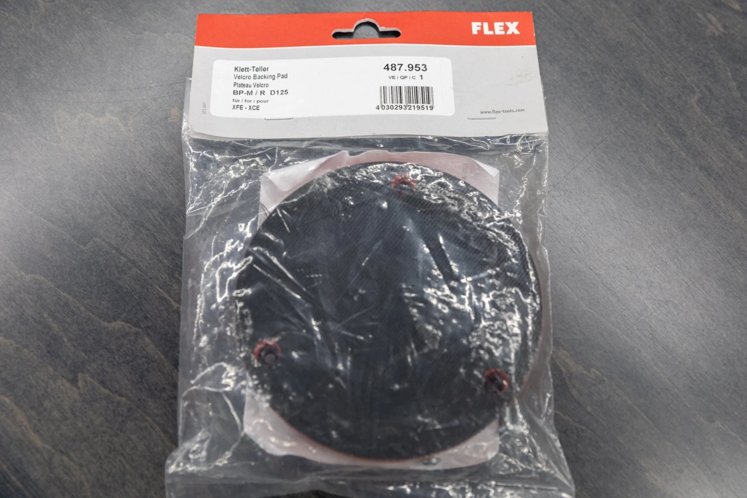 Flex XFE 7-15 is a cushioned Velcro backed 3″ backing plate. This is a direct replacement for the backing plate that comes with a Flex XFE 7-15. You can use any 5-6.5″ pad that uses the hook & loop adhesion of Velcro. The backing plate has a red cushioned mounting surface.