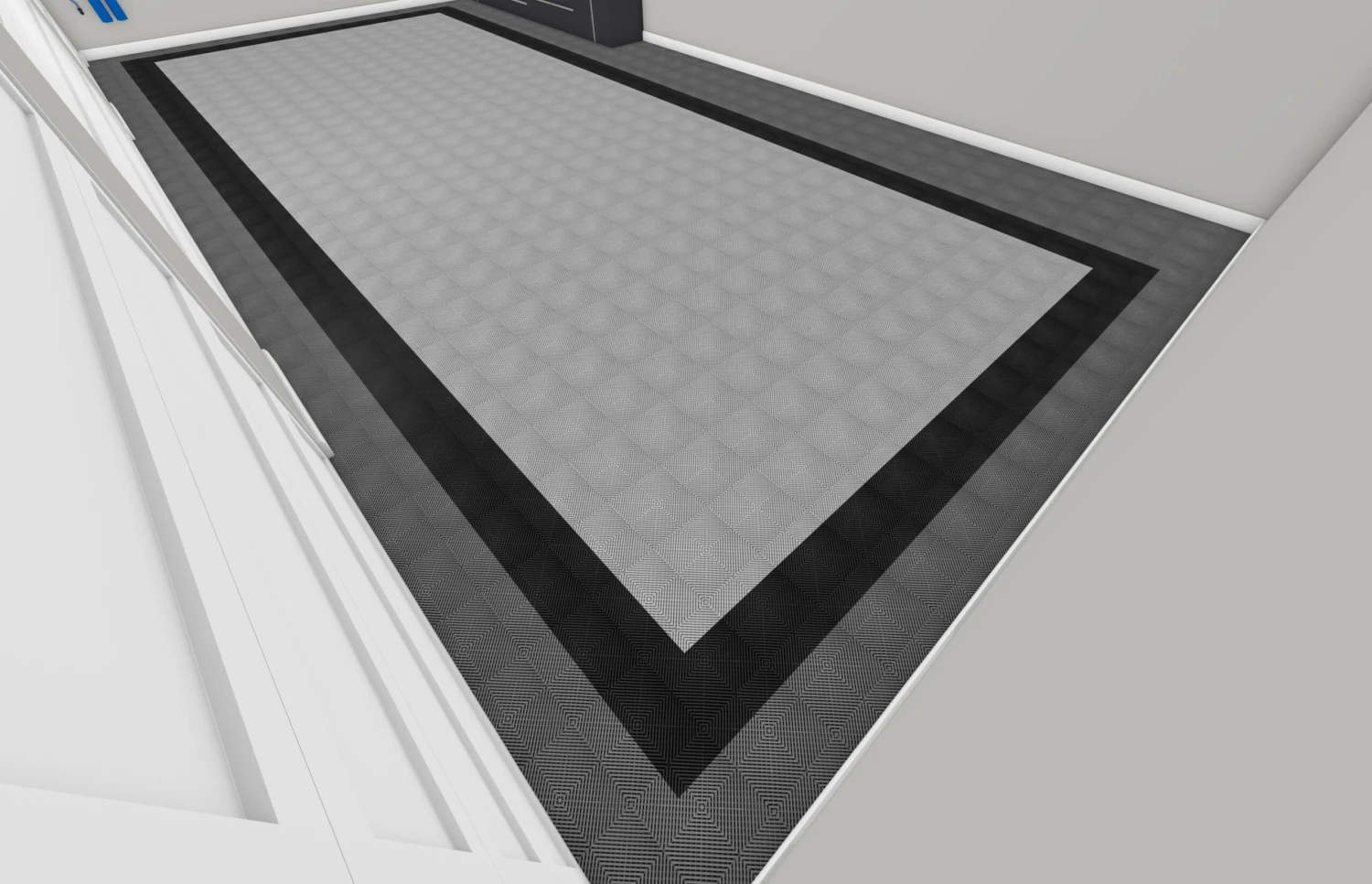 - Choose the color scheme you’d like to use for your garage. The color choices are listed from the outer edge that touches the walls and garage door to the inset border that is one tile wide to the interior pad covering most of the floor. The included looped edge color will match the first listed color for that outer edge.