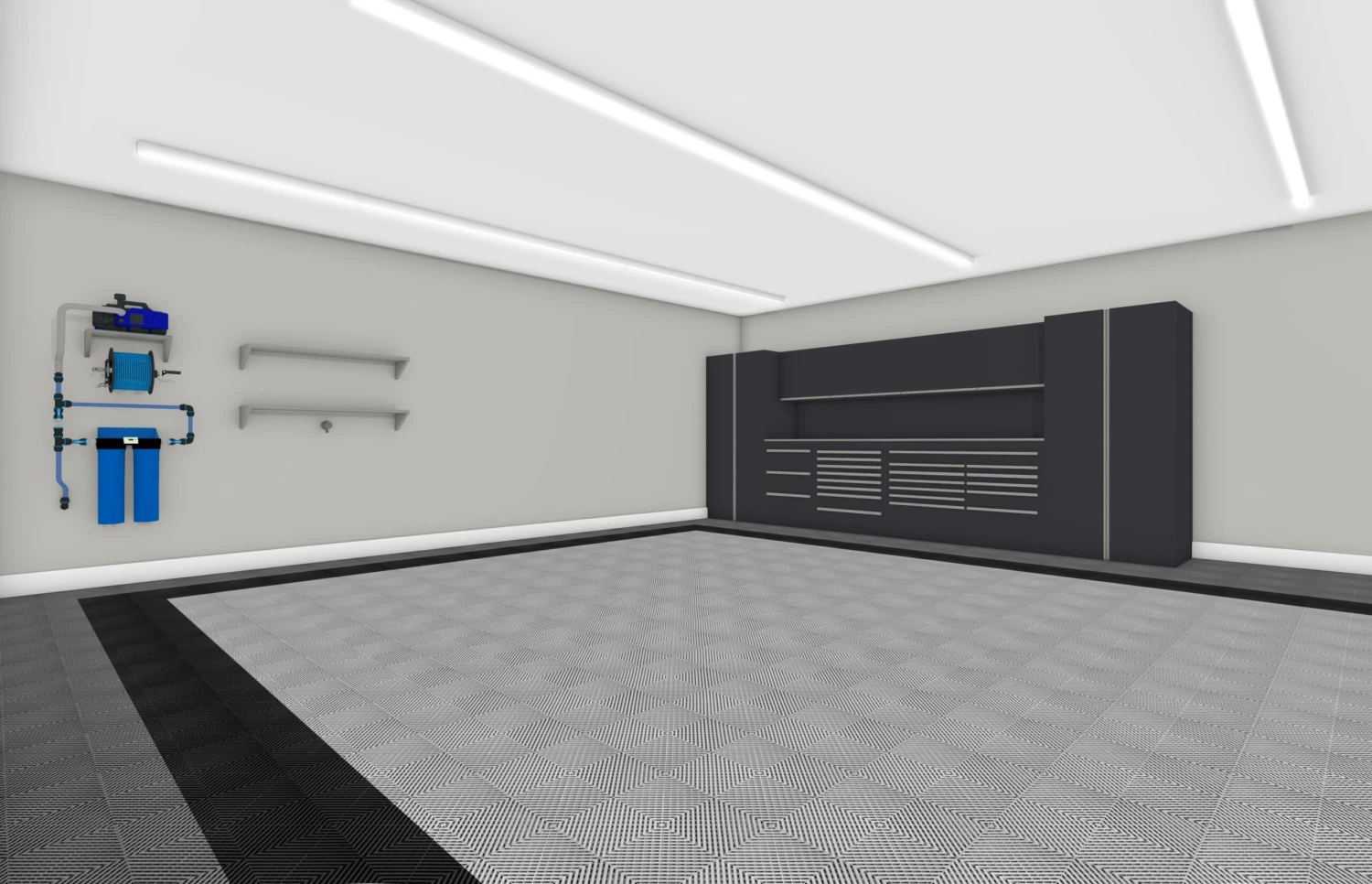 This four-car flooring solution is meant to be a simple one-click purchase to cover the floor in your four-car garage with a pre-determined Swisstrax design and color scheme.