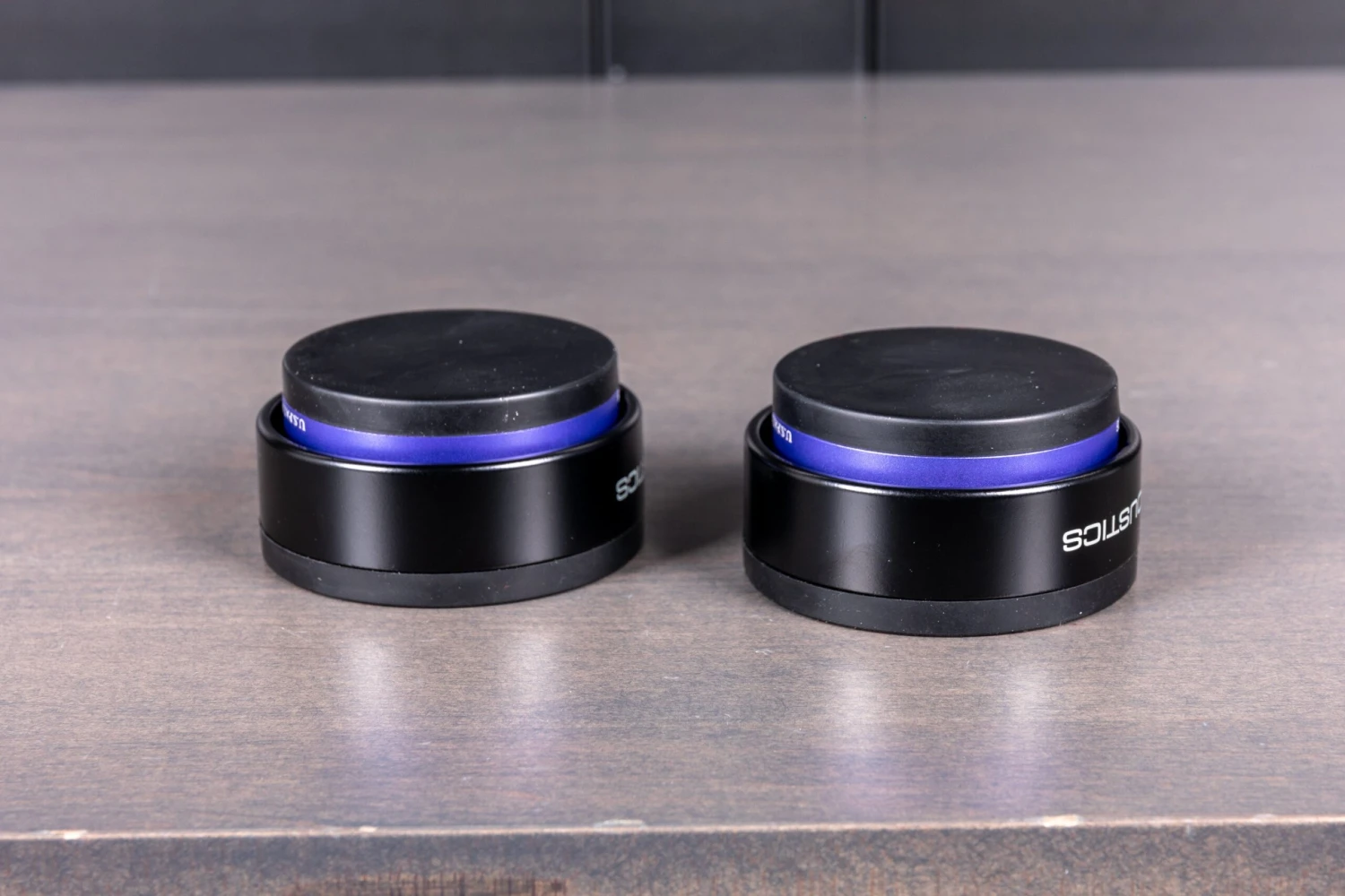 IsoAcoustics carries three models of this puck, but I decided to go with the 76-version. Mainly because it’s the biggest of the three, stout, and can hold more weight. If you’re curious about the dimensions of this thing, those are 3″x1.5″ (76x37mm). These aren’t adjustable; the suction cup design adheres to the cabinet’s underside, making the upper isolator live with the speaker while the lower isolator anchors to the supporting surface.