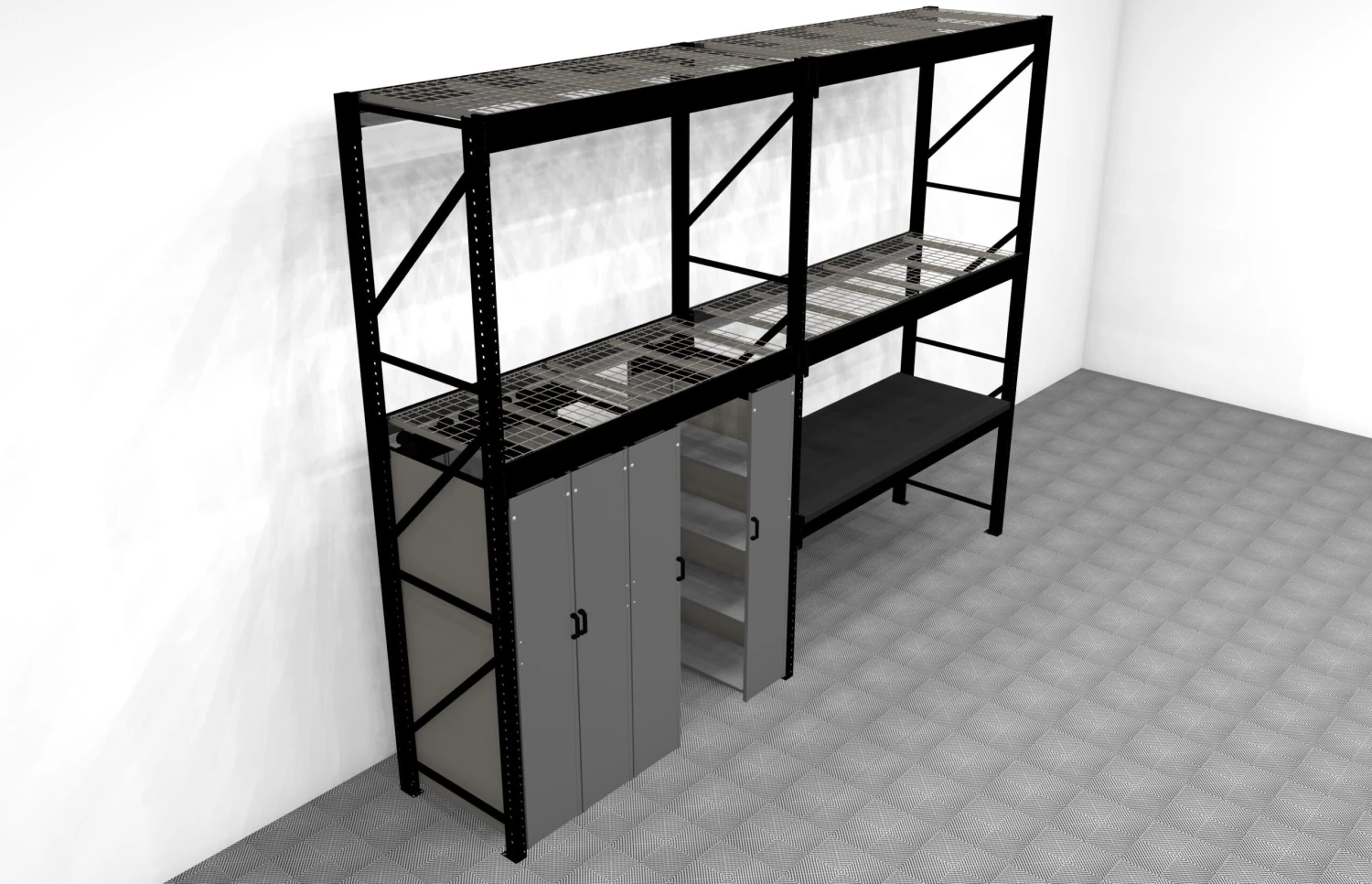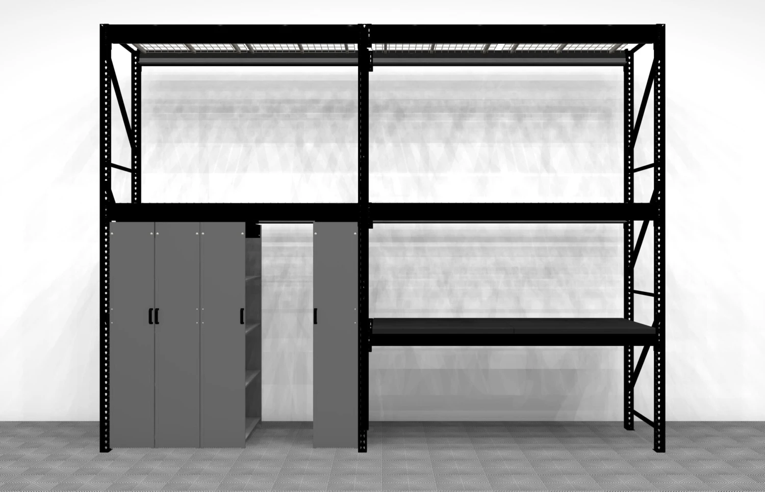 The Levrack Workstation Plus with Overhead Storage is the ultimate version of the Levrack Workstation. You’d get this option if you want to maximize storage space while also adding a worktop to your