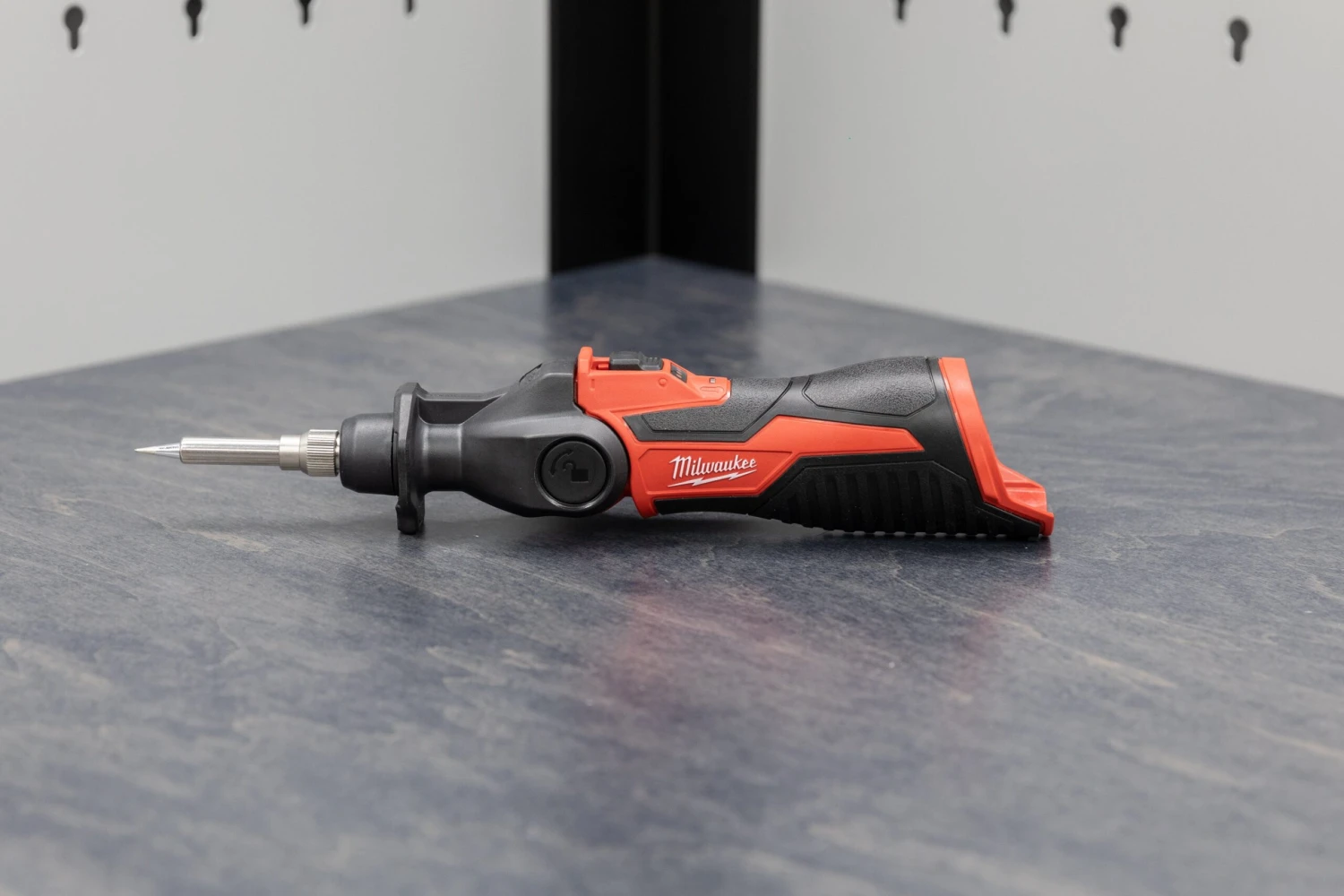 If you work on wiring and you’re not always at a work bench then you’ll want to pick one of these up. It gets up to operating temp within 18 seconds and has a pivoting head so you can hold it comfortably while getting the tip where it needs to be. It also has an LED indicator that turns green when it’s up to temperature and red when the tool is still hot.