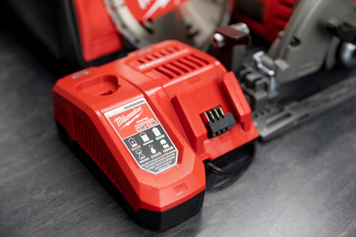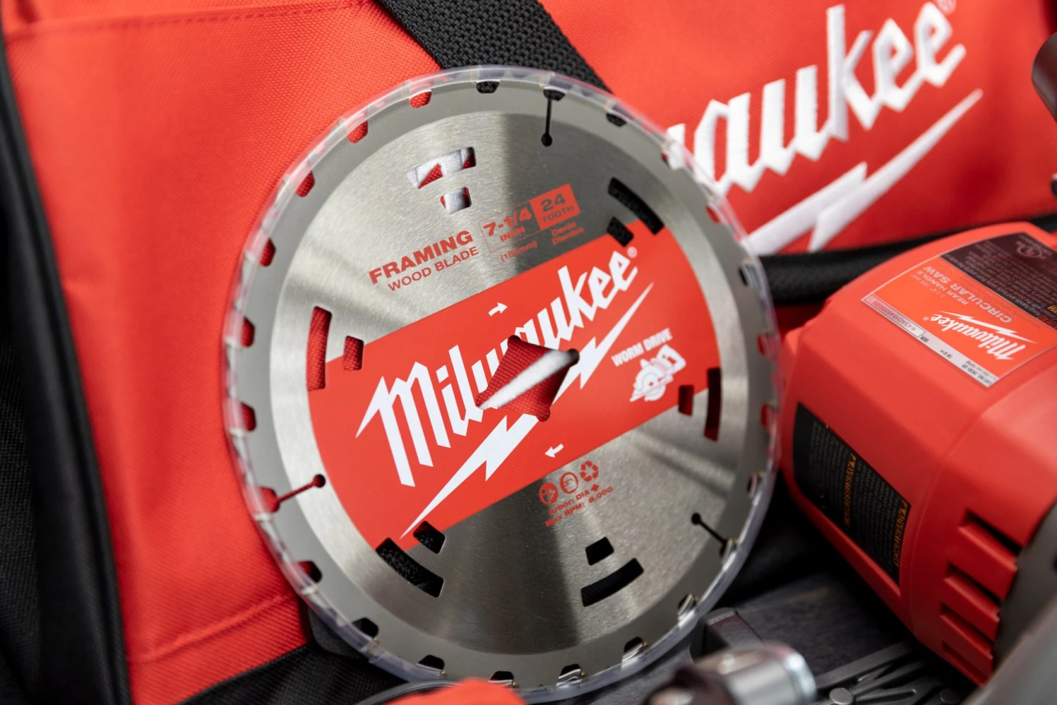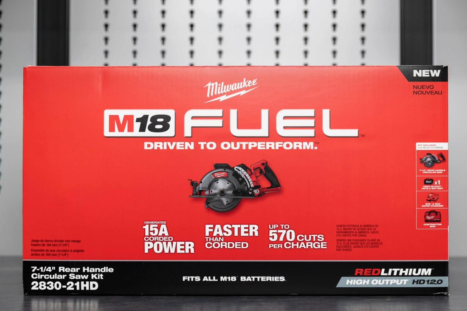 Milwaukee makes a bunch of circular saws. The M12 version is a bit small if you’re trying to rip through giant pieces of wood, so M18 is the way to go. To me it makes sense to have 2 different sizes in your cabinet. This is the industry standard size 7 1/4″ inch circular saw. You can use this for rough framing or ripping sheet goods…all the standard stuff you’d use a circular saw for.