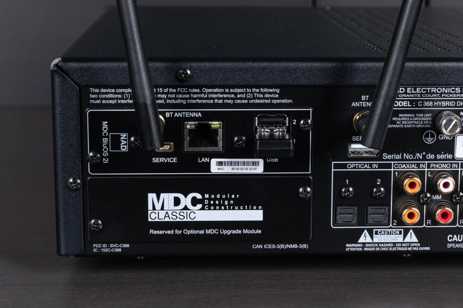 The NAD C368 is an upgradeable digital amplifier equipped with BlueOS streaming, Apple Airplay 2, and Bluetooth. With a built-in MDC (Modular Design Construction), you’ll be able to customize it with additional capabilities and features whenever you want, like HDMI switching.