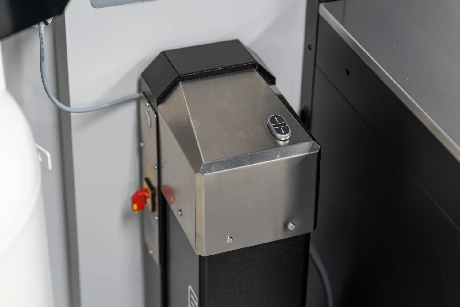 The hydraulic system consisting of 2 independent, powerful hydraulic cylinders does not require an external compressed air connection. The Nussbaum hydraulic system requires neither electronic synchronization monitoring nor electronic limit switches and thus guarantees the highest possible reliability. The powerful suboil unit is integrated into the power unit. The unit is well protected and easily accessible for maintenance at the same time. The scissors and substructure of the Sprinter 7 are made of high-quality steel and are welded and powder-coated in Nussbaum’s own state-of-the-art facilities. Your lift is well protected against dirt and weather in the long term.