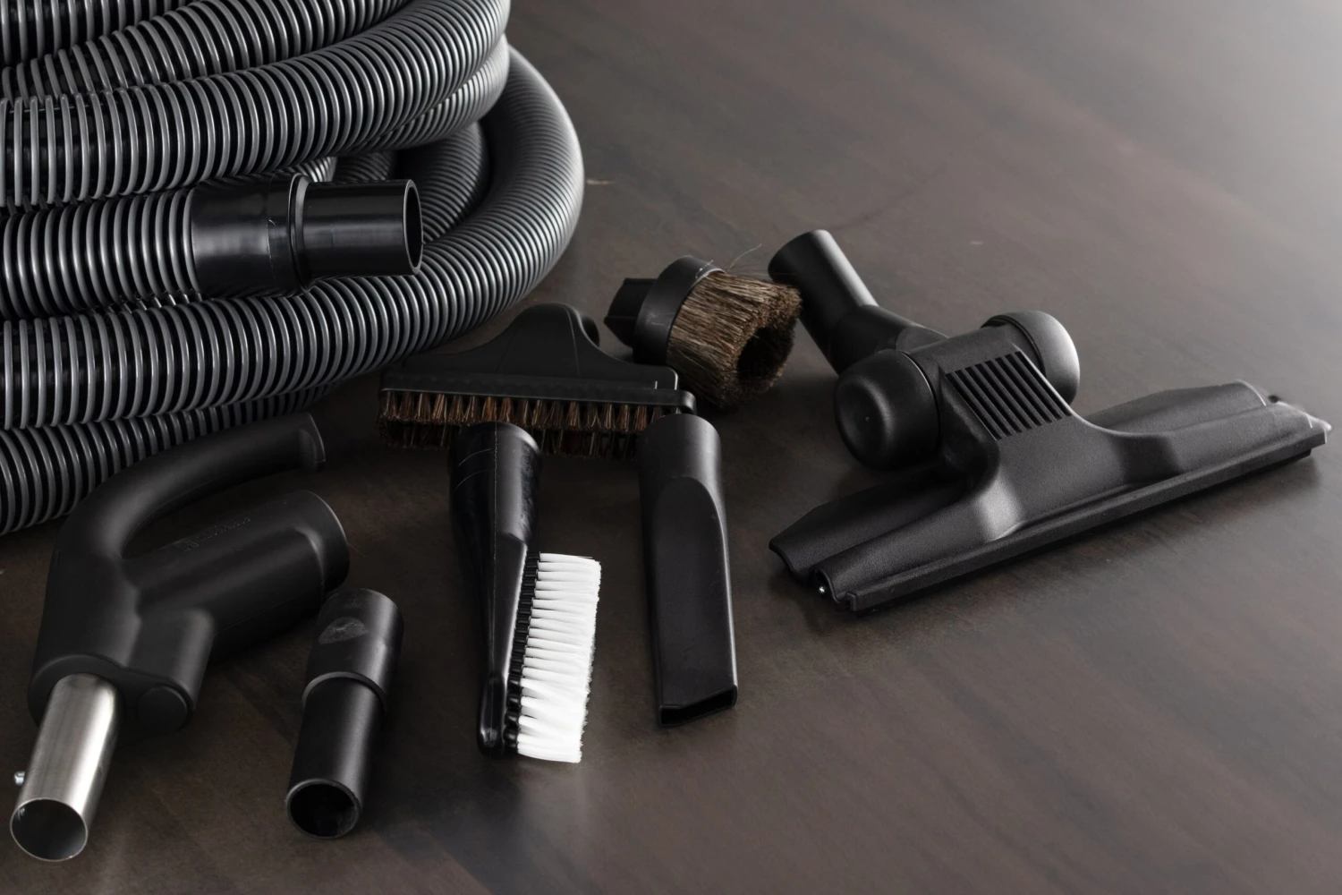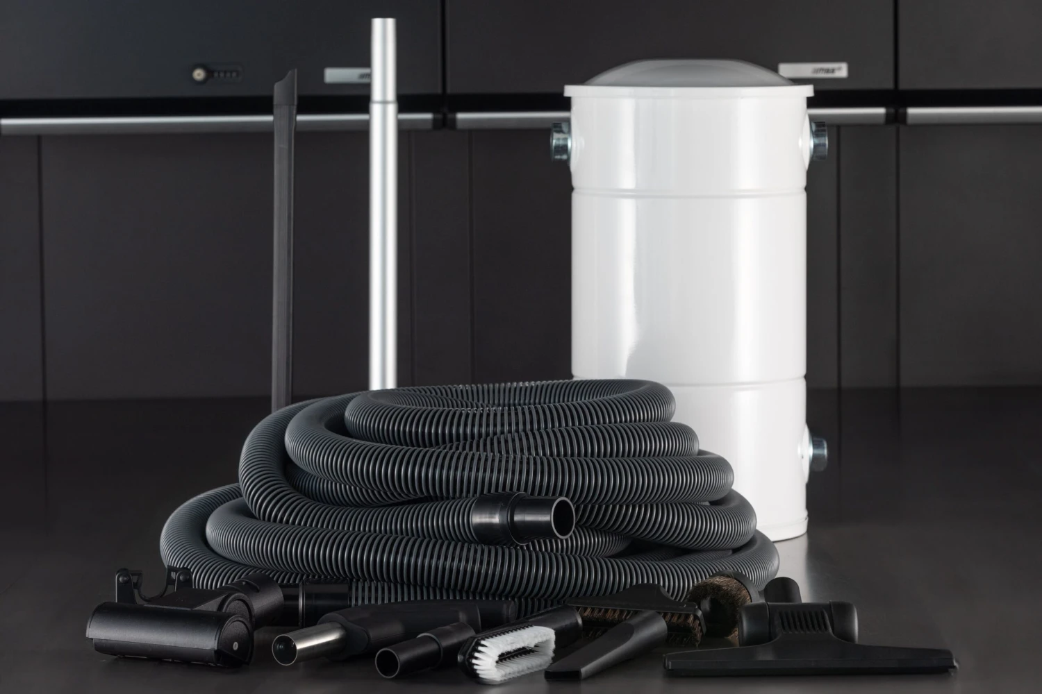 Vacuum With Internal Hide-A-Hose Solution – Comes with the vacuum itself, all accessories, a 50′ Hose, and every part and piece needed to use and install the Hide-A-Hose system behind or inside the wall.