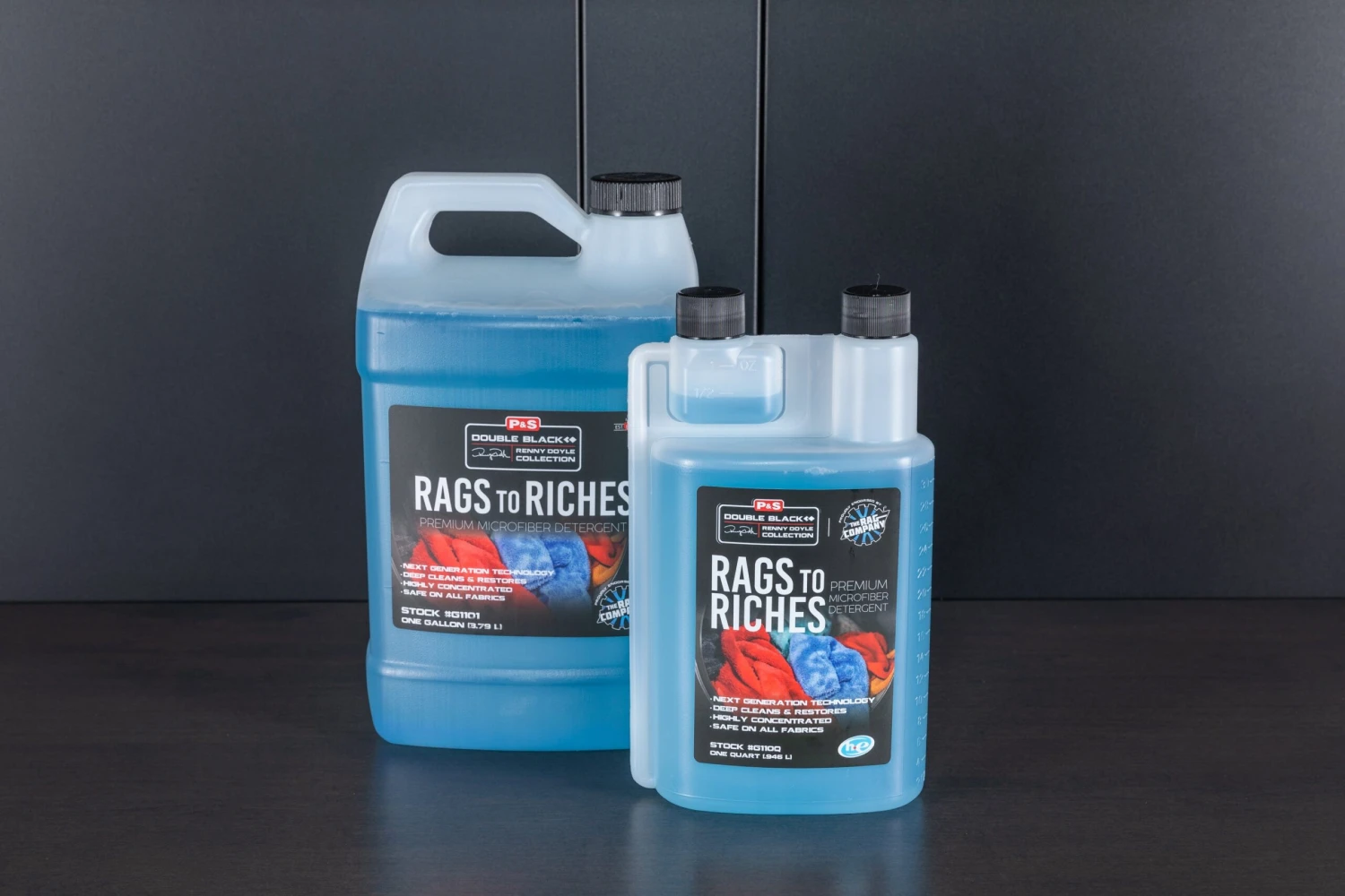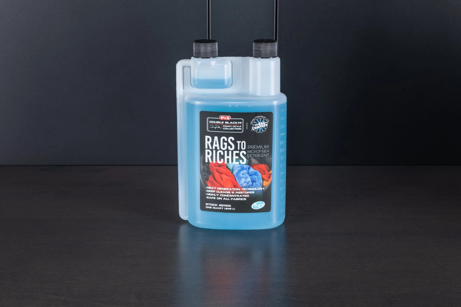 What’s different about Rags to Riches compared to other detergents for microfiber towels is that it will remove most, if not all, hydrophobic properties that spray sealants and waxes leave in your towels over time. When you remove your previously dirty towels from the wash, they’ll come out being softer and brighter.