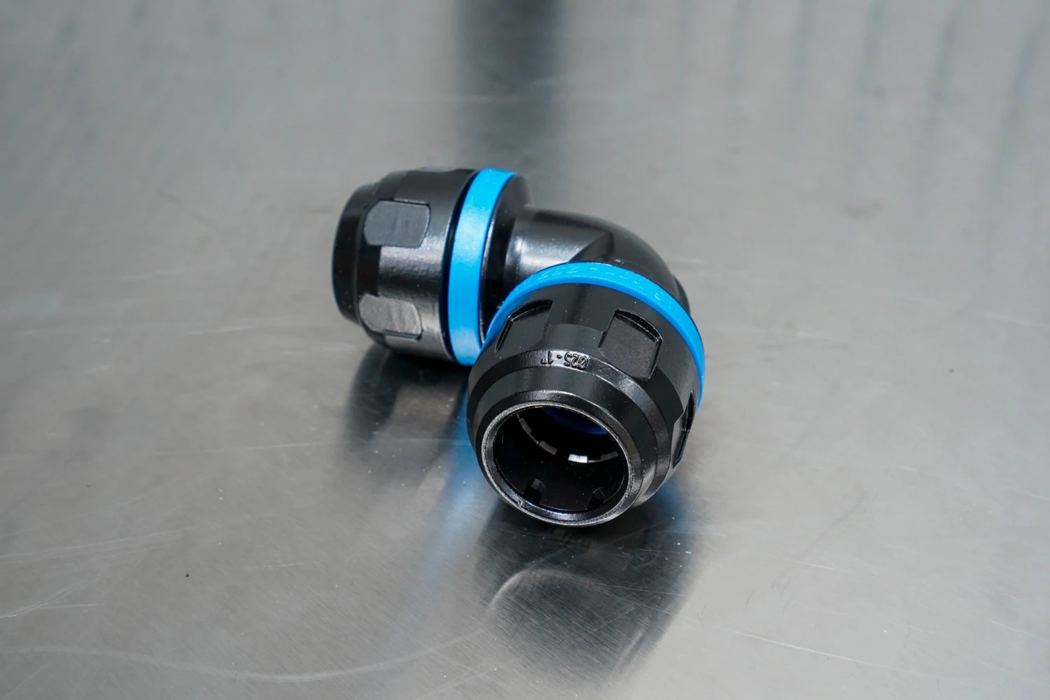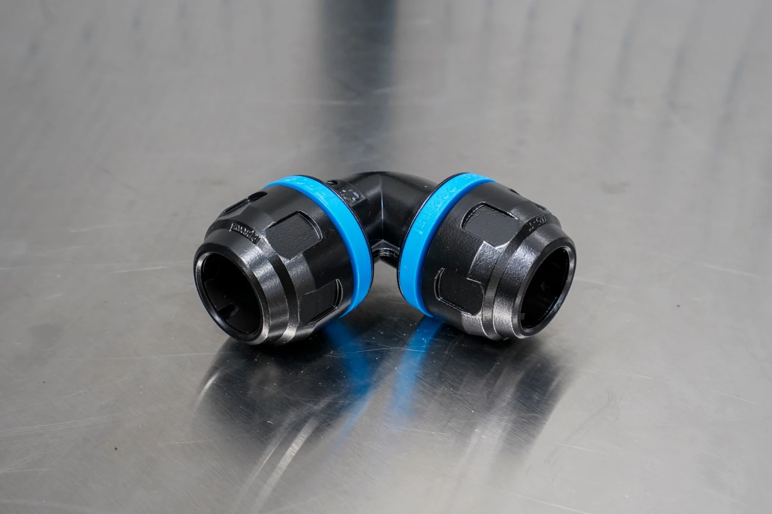 You’ll use this fitting when you need to use a 90-degree turn with Prevost 1″ piping.