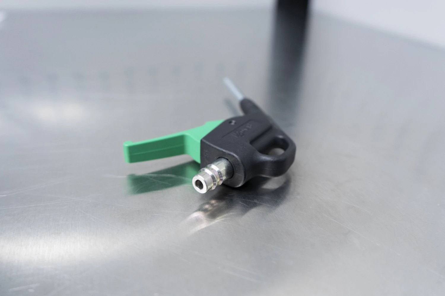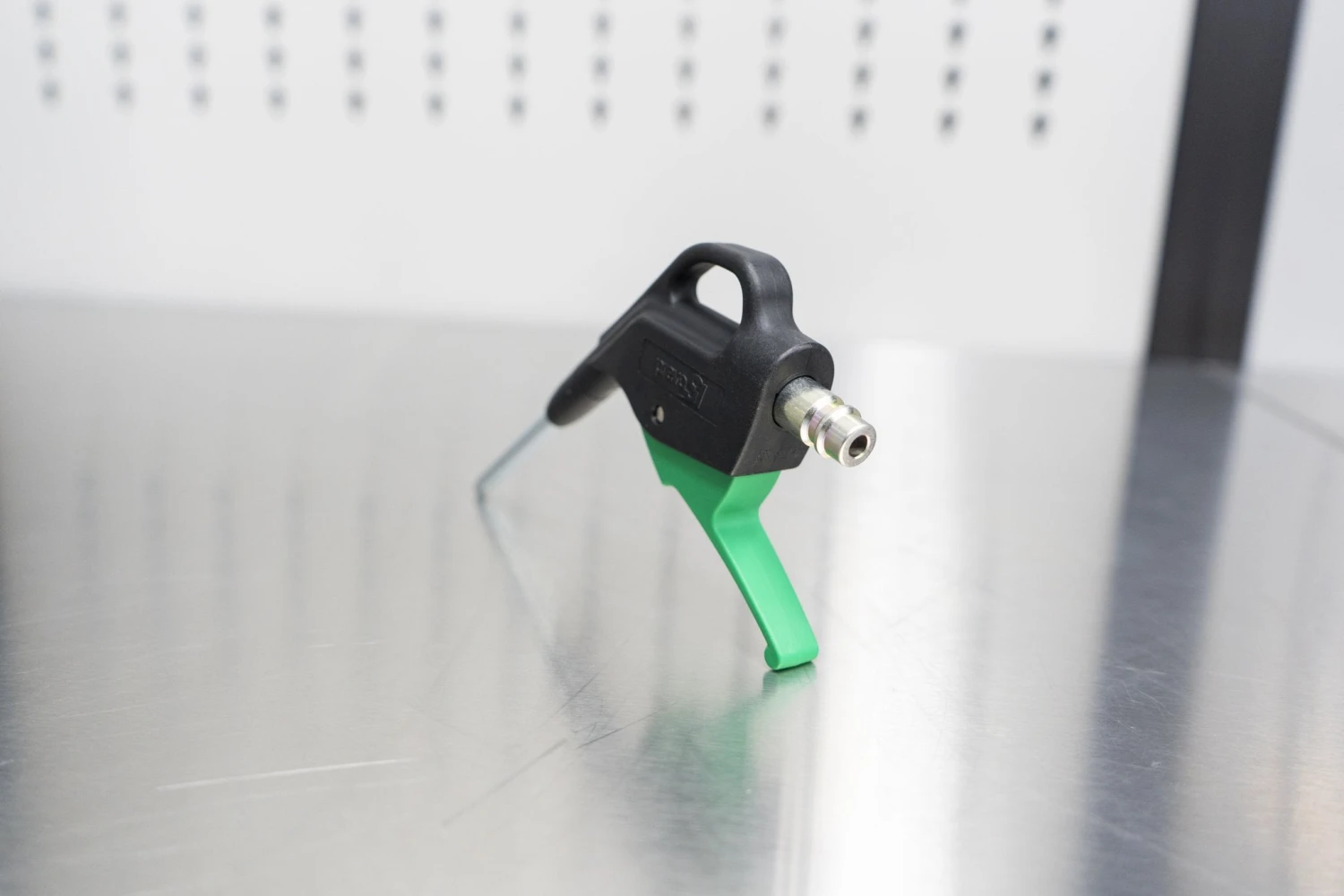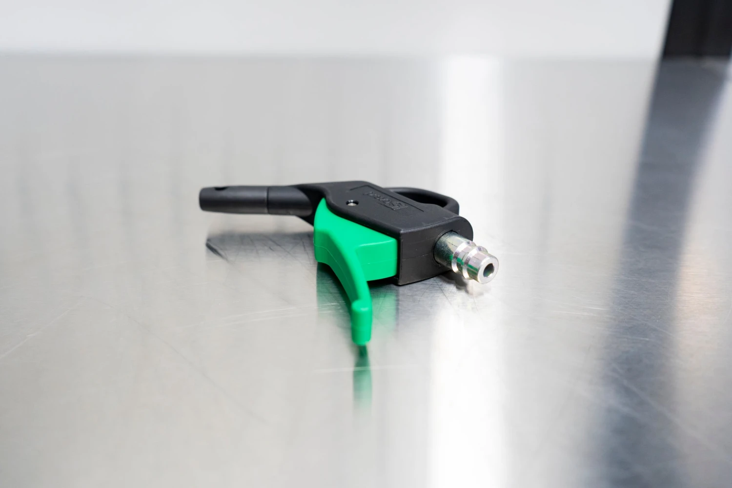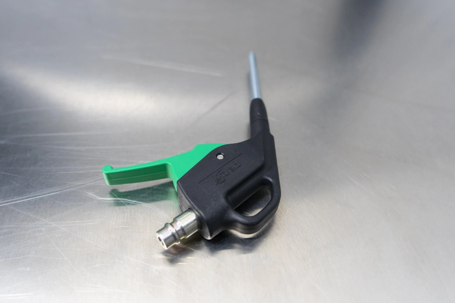 These are OSHA-compliant blowguns. They have a polyamide composite tip that has side vents for maximum safety. These have the Euro High Flow fitting attached to them, so make sure you have Euro High Flow couplers ready.