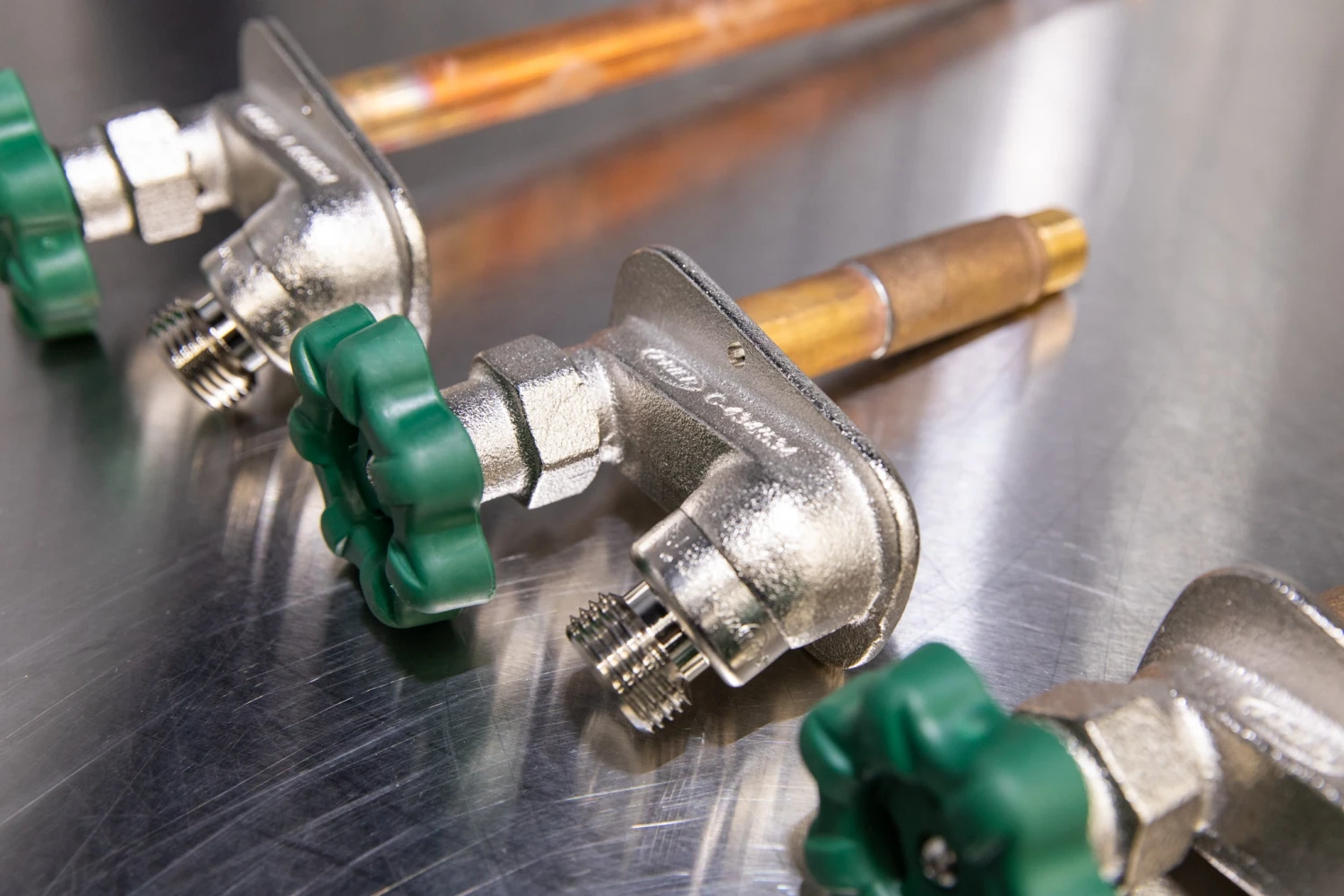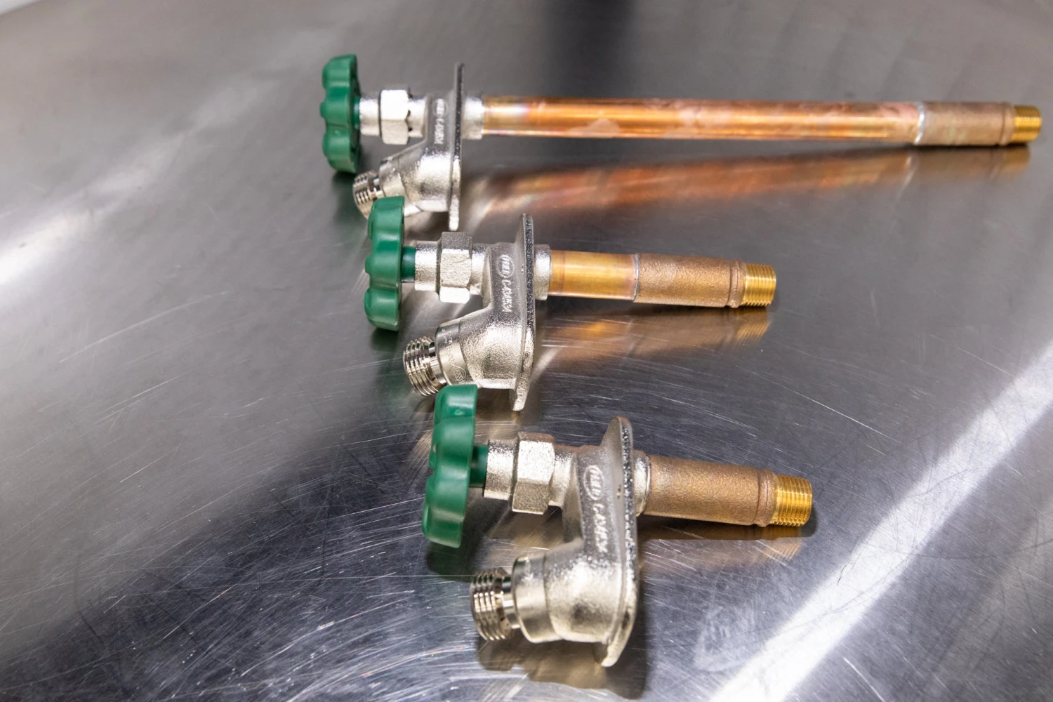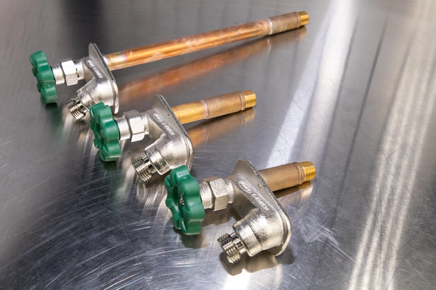 The C-434 can provide a year round freezeless operation due to the bibb valve being connected to the water supply pipe in the heated section of the structure (Your house or garage). The 4″ or 12″ are recommended for locations where it gets really cold outside because the valve will be further inside the heated structure where something like the 1.5″ close couple bibb has the valve closer to the exterior elements. The copper piping on the prier C-434 hose bibbs are at an angle so any water left in the pipe will drain out through some holes behind the handle when fully closed and not risk being frozen in the pipe.