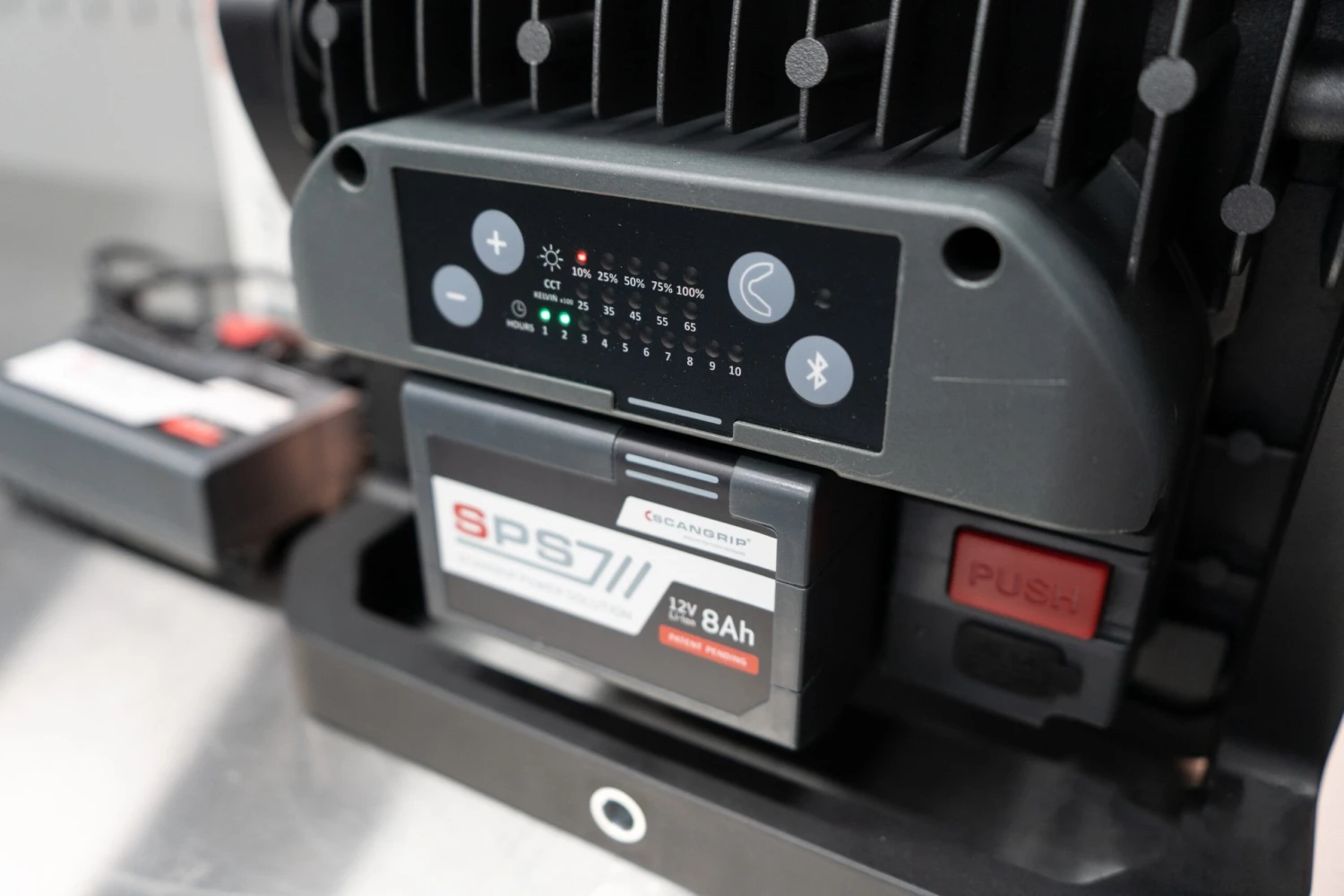 The new SCANGRIP POWER SOLUTION provides you with unlimited availability to light. Easily you can insert a new fully charged battery and continue the work while another battery is charging. Or you can simply add the charger directly to the lamp to get power supply. The integrated battery backup function prevents you from being without light at any time.