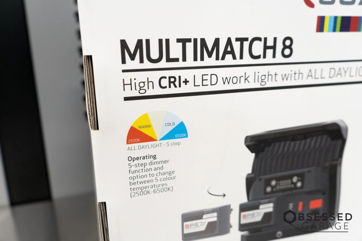 MULTIMATCH 8 is an outstanding and powerful rechargeable work light providing up to 8000 lumens for inspection of large surfaces during polishing, painting and cleaning operations as well as for color matching.