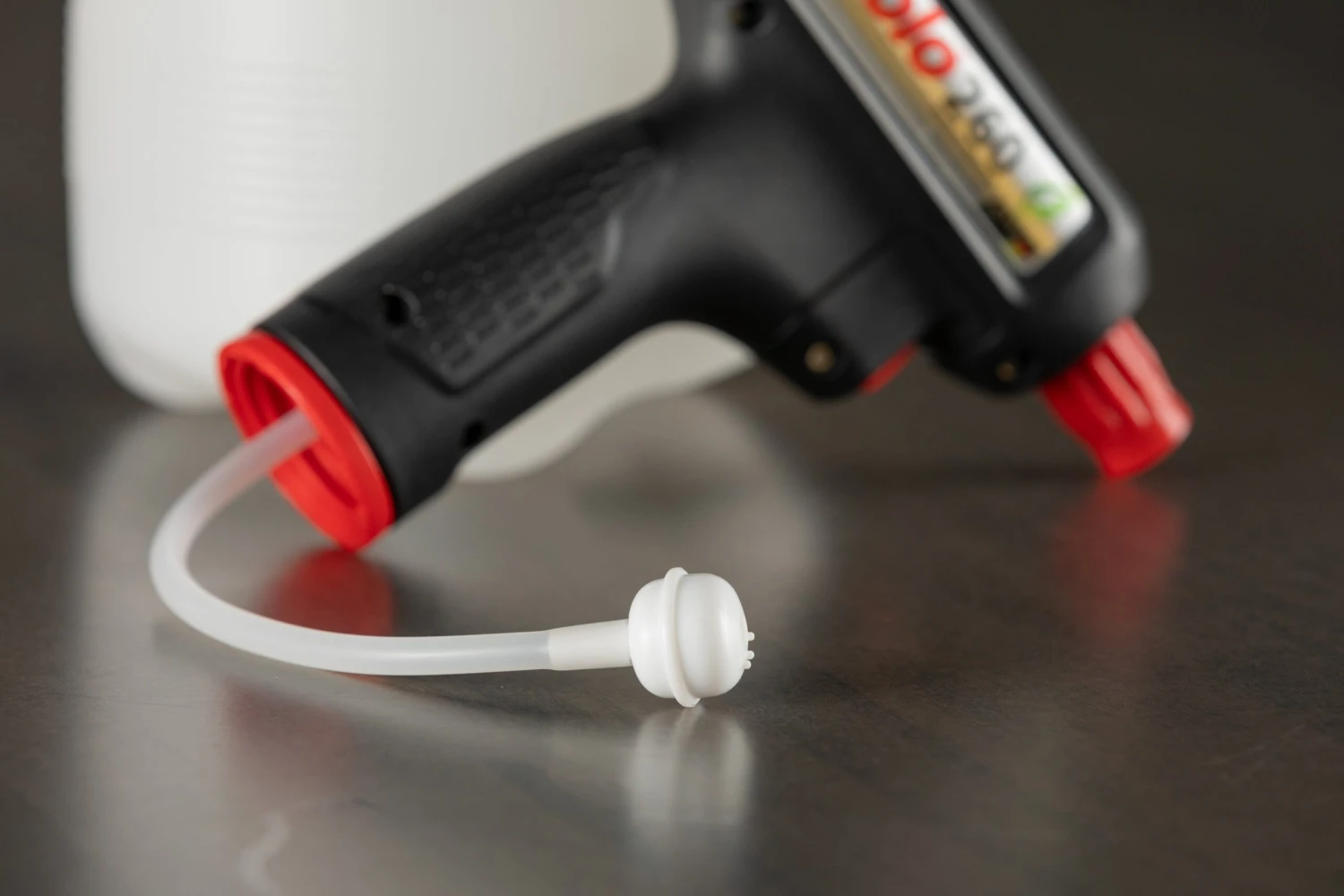 - The flexible internal suction hose ensures complete emptying of the tank and also makes spraying from any angle possible.