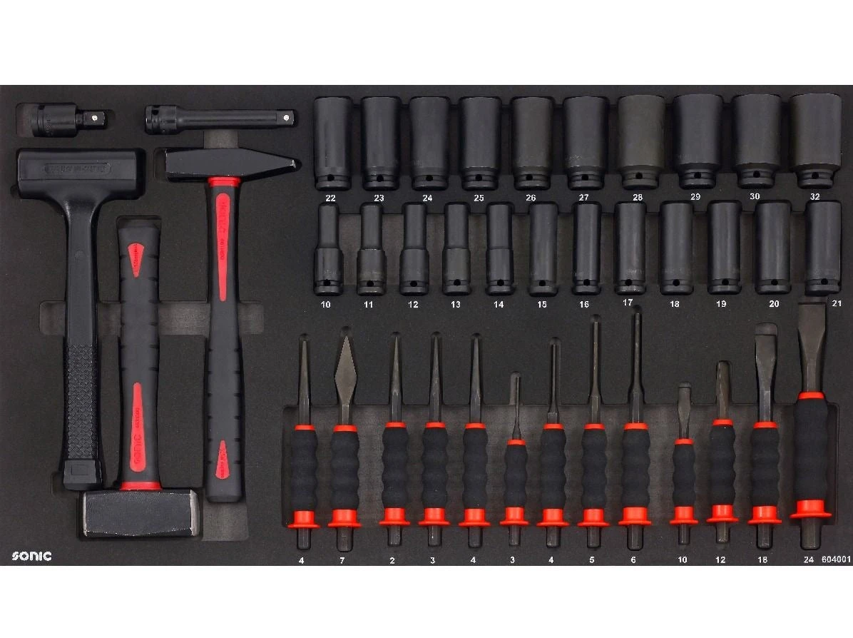 - Tool sizes engraved in foam