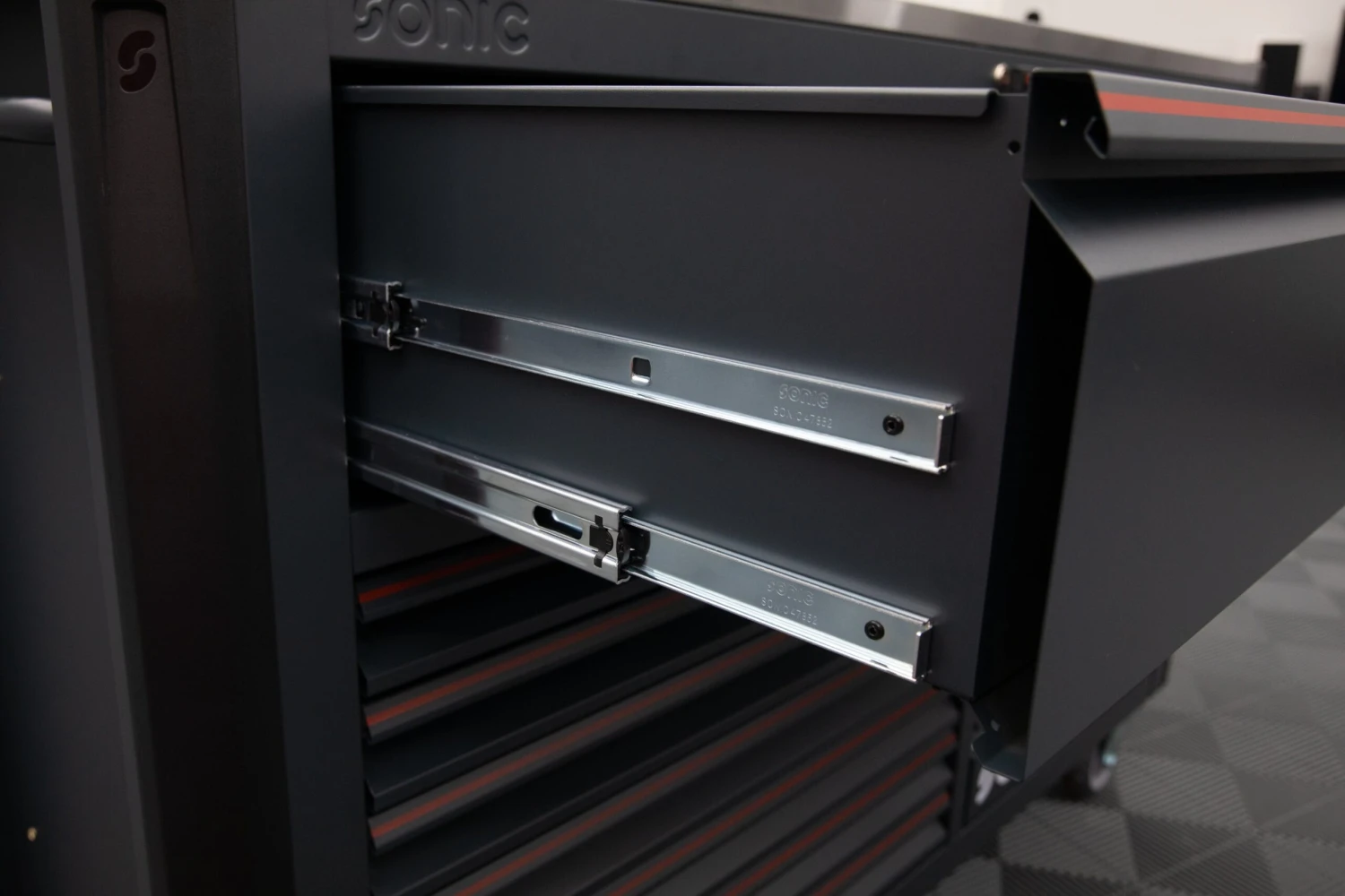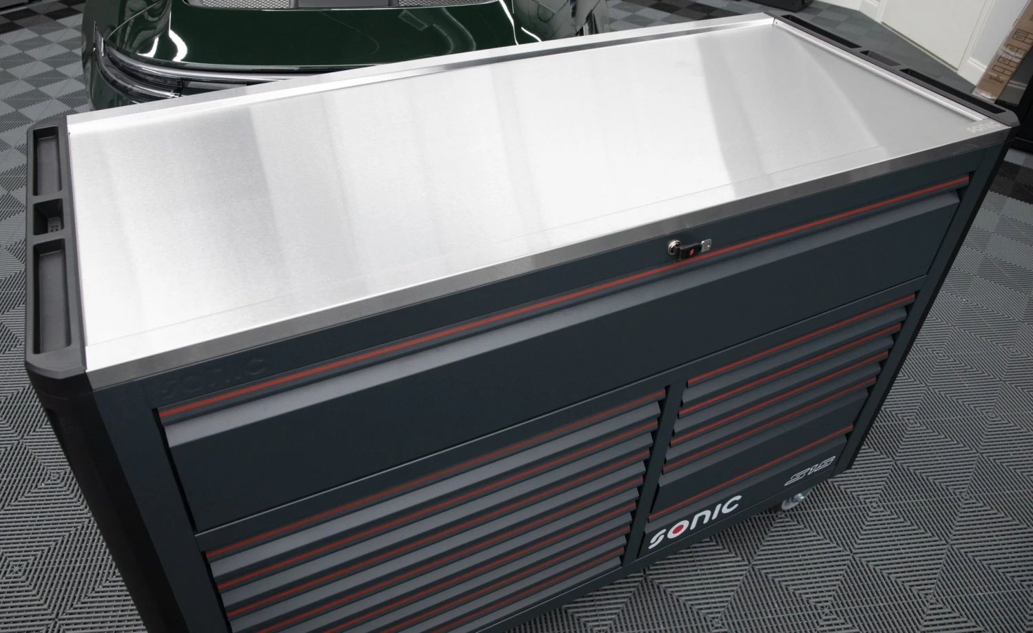 Like the other toolbox options in the Sonic NEXT line, the worktop is built from reinforced stainless steel with a drip edge to prevent fluids or tools from rolling off the workspace. This toolbox is Sonic’s largest roll-around box in the range – it’s undoubtedly the ultimate storage solution on wheels.