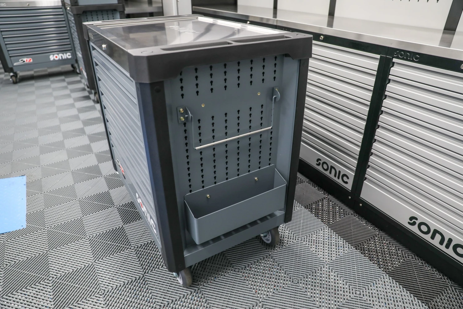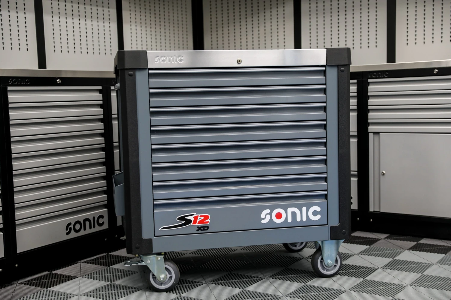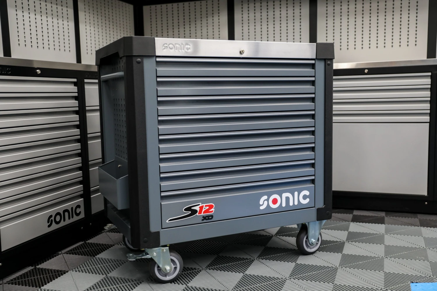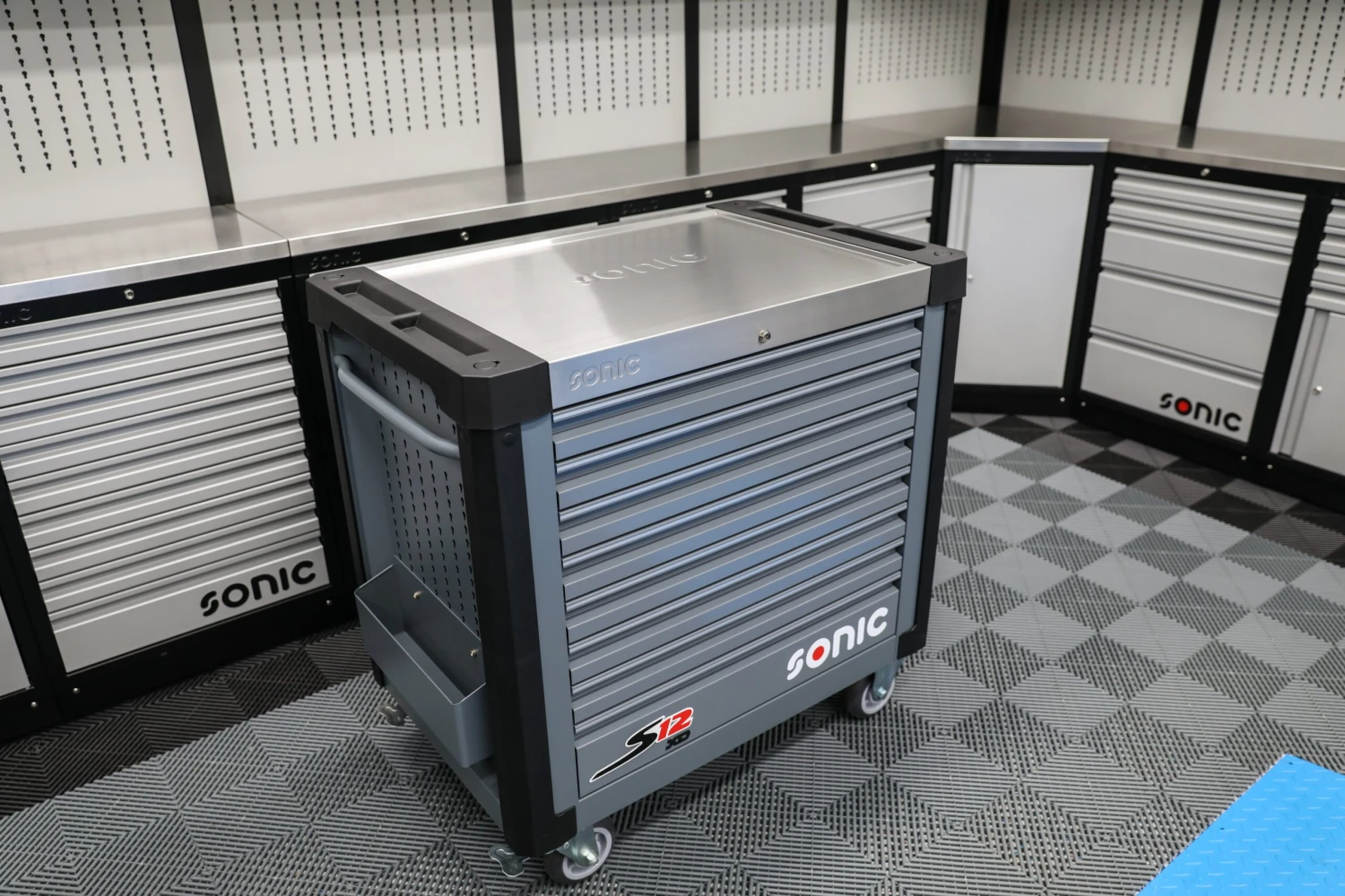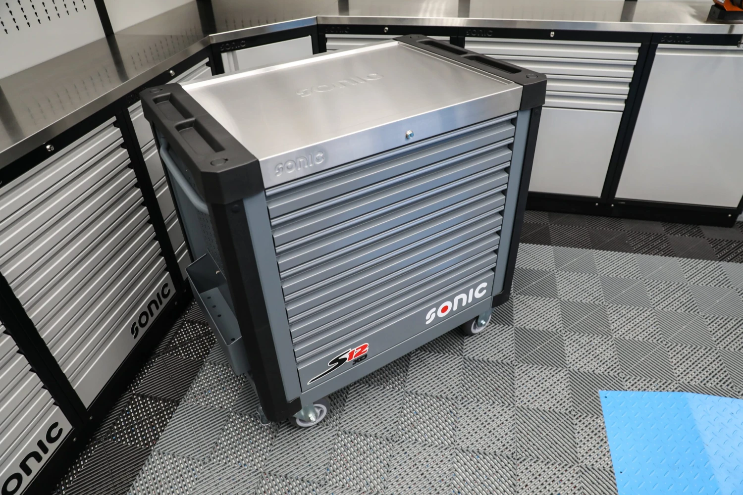 I’ve seen a whole lot of tool boxes over the years. You know me, I like the fancy stuff. In the world of tool boxes the Sonic ones aren’t particularly expensive. I never understood why someone would spend $10,000 on a mediocre box. I always thought, “Why in the world would someone spend 25% of their annual income on some so-so stuff?” Before I actually went to Sonic HQ in Auburn, I saw a few of their S11 boxes at Atlanta Motorsports Park. I love the MSS cabinet line but not the tool boxes I saw. I thought, “I’ll chase tool boxes from some other company later.” When I finally made it to SonicUSA HQ, I asked them to open up one of each of their tool boxes. They were all in a line: S8, 9, 10, 11, 12, 13, 14, and 15. I got to touch and feel each one of them. It was really obvious to me almost immediately, the S9, 12, and 12xD were legit, but I didn’t like any of the other ones.