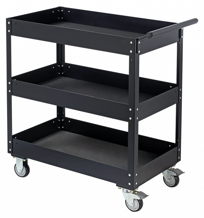 The 3-Drawer Service Cart consists of a top and bottom tray, and three drawers that house small, medium and large size foams. The Service Cart includes extra large locking wheels and brakes, and foam liners that sit inside each tray. A centralized lock and anti-tilt system are also featured.