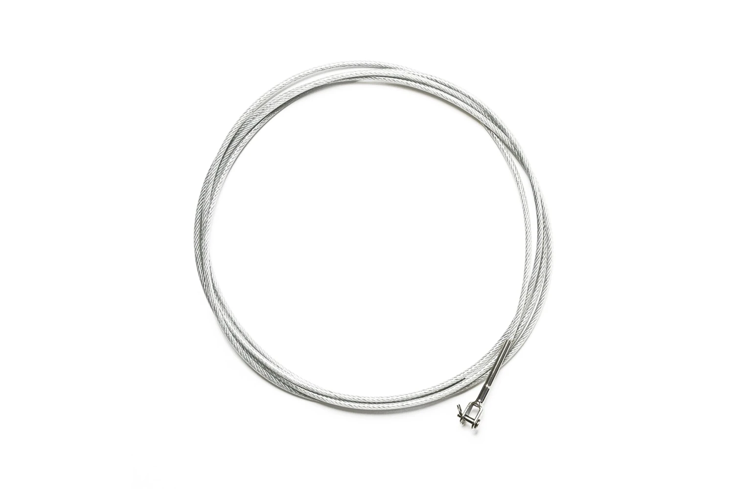 This cable has a durable nylon coating that protects the cord from fraying. Each cable end is a swaged fork with ¼” pins on each side.
