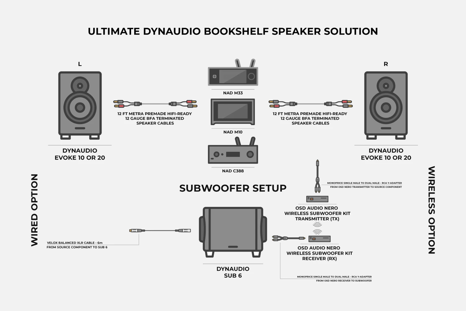 What you decide to go with will depend on how much you’re willing to spend. If you’re really balling, you will go with the NAD M33 with the Evoke 20s and a