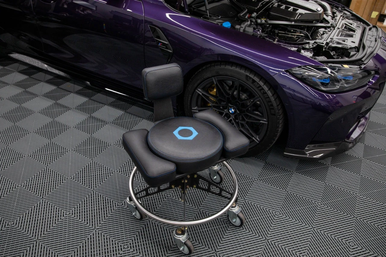 that I have this attached to, and I like that I can roll the chair around where my chest is against the backrest when I’m polishing. The Big Boy provides extra stability where I don’t need to focus on balancing my body so much.
